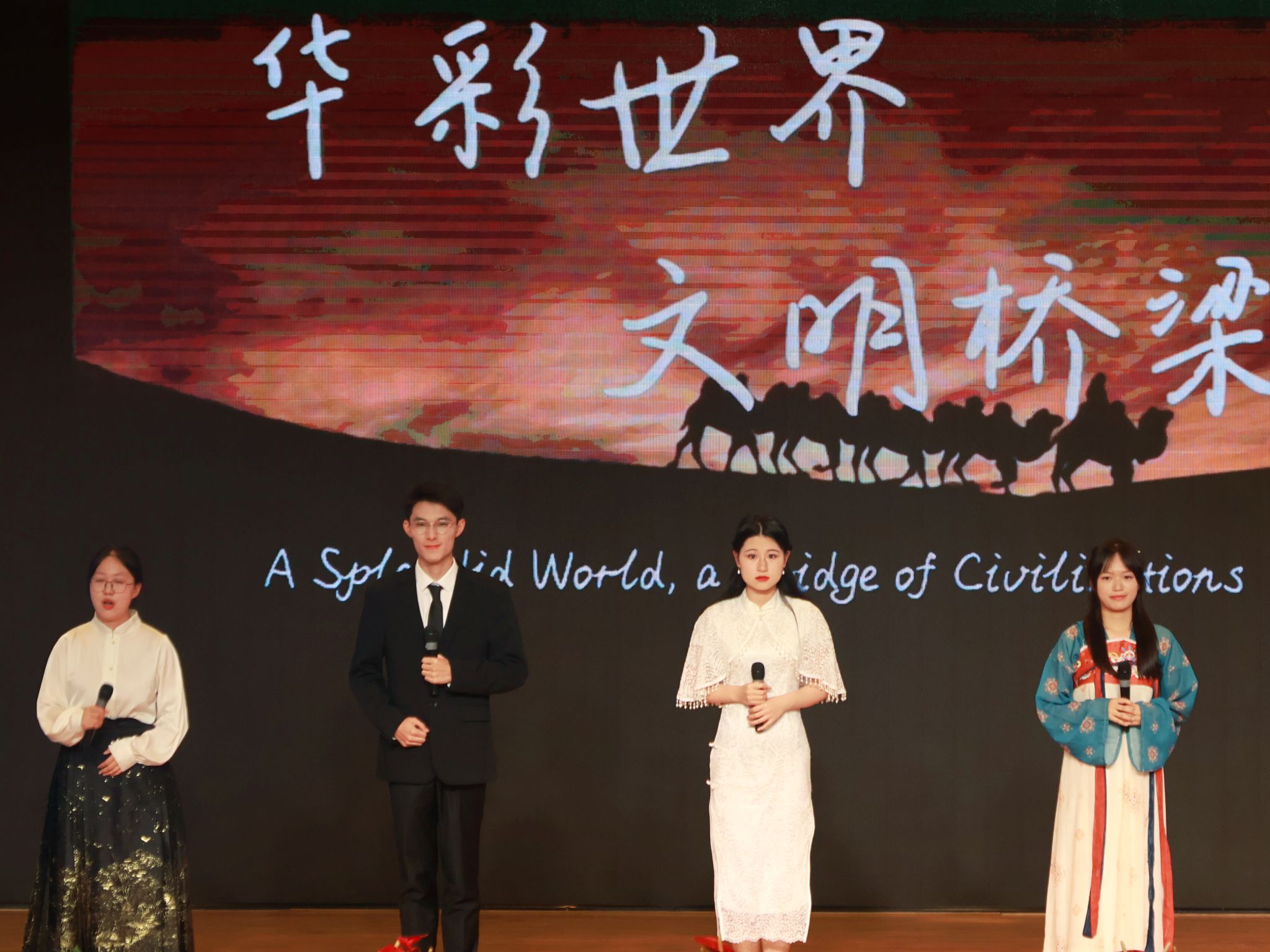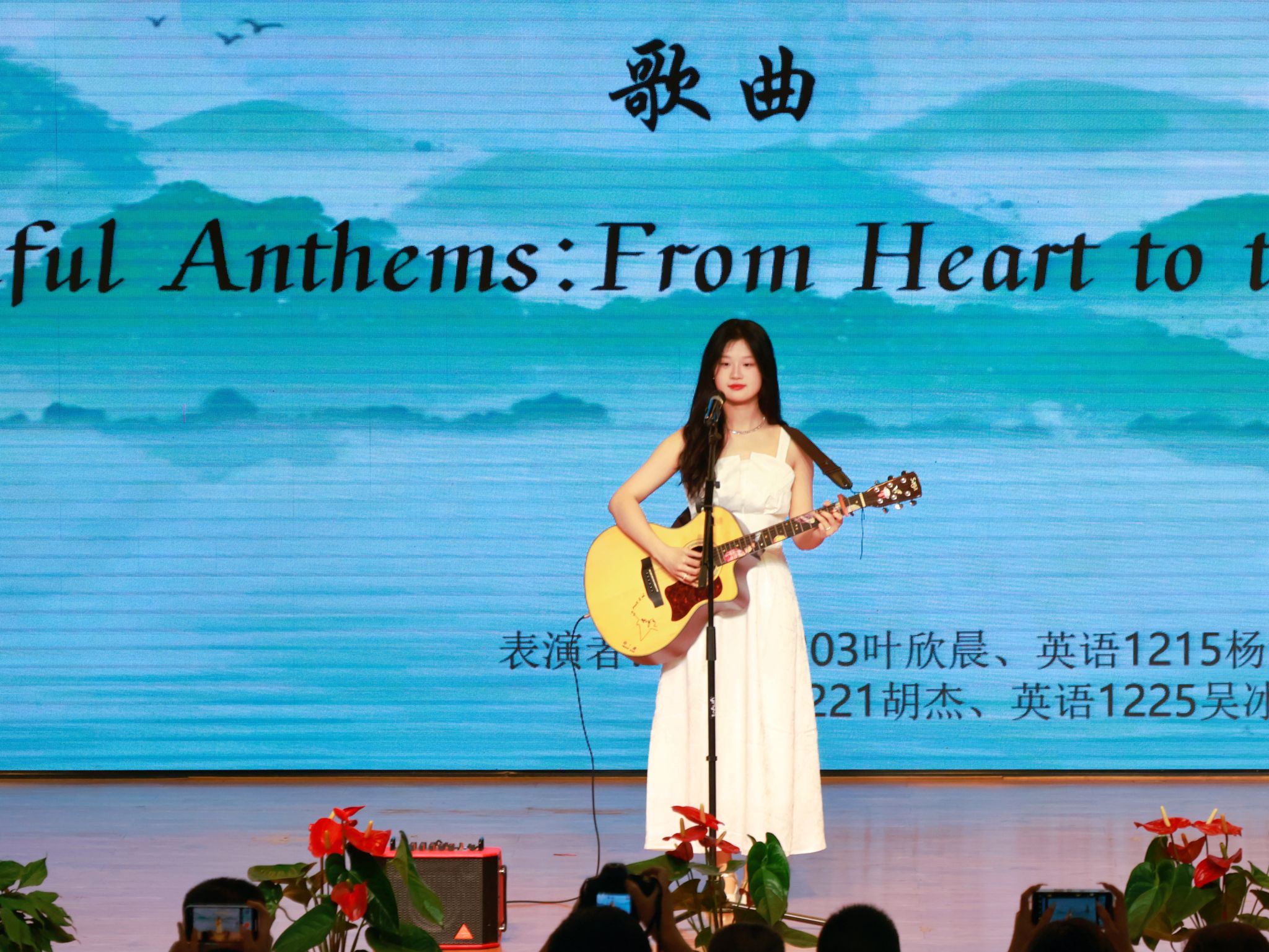 随后,共享书香醇厚的读书心得分享《书香致远,共筑芳华》、氛围欢快活泼的串烧歌曲英文版《上春山》《Another day of sun》、令人身临其境的配音秀《夏日幻魂》、多人合唱歌曲《Youthful Anthems: From Heart to the World》,以及倡导文化多样性的英文演讲《华彩世界,文明桥梁》等节目精彩纷呈,传递文化交融、文化互通之美。