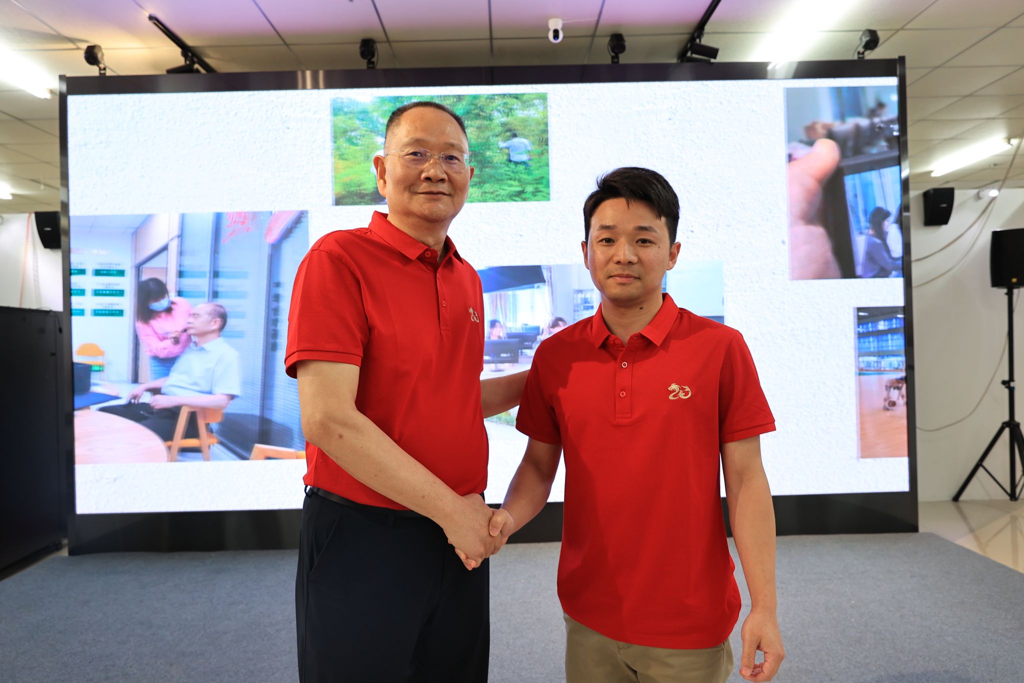校庆主题生日会上,粉色的心形气球,精致的甜点果盘,以及印有“2004-2024”字样的校庆主题蛋糕,把生日会烘托得温馨又浪漫。伴随着欢乐的生日歌曲,吴永桥和5月份生日的师生代表在众人的祝福中共同许愿切蛋糕。吴永桥表示,华夏二十年来取得的成绩离不开每一位师生的辛勤付出和无私奉献,希望师生们在华夏感受到温暖和幸福,祝华夏明天更加美好。