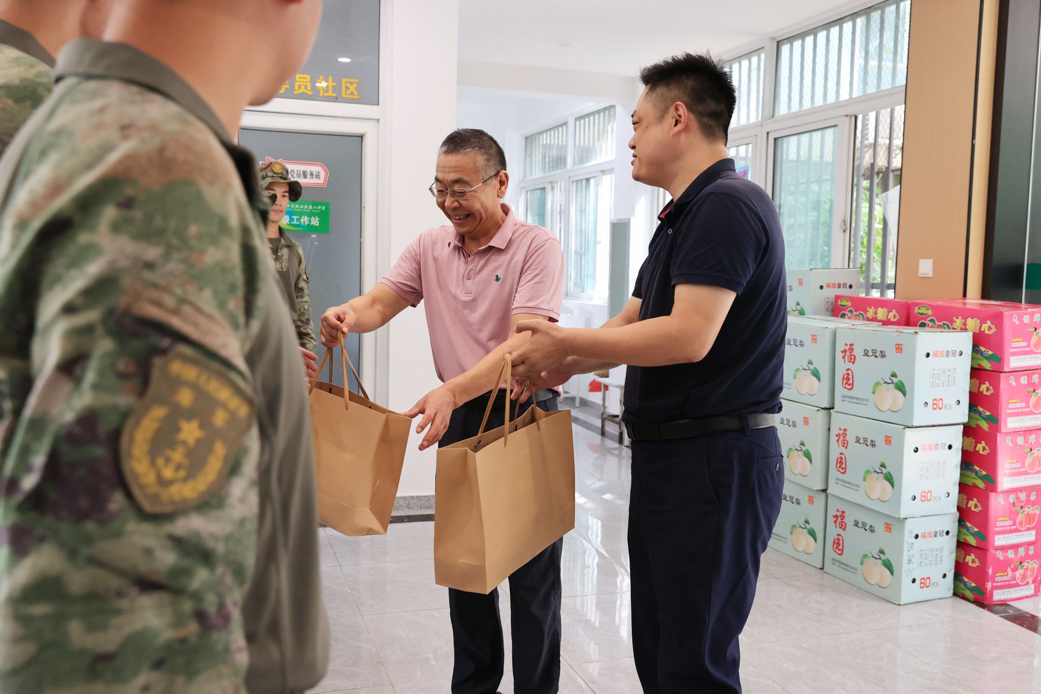 9月16日上午,中秋佳节即将来临之际,校党委副书记、副校长李海民在相关职能部门负责人陪同下,带上校董事会秘书亲手制作的精美月饼及水果等慰问品,走访看望承训教官和新生,为他们送上节日的祝福与关怀。