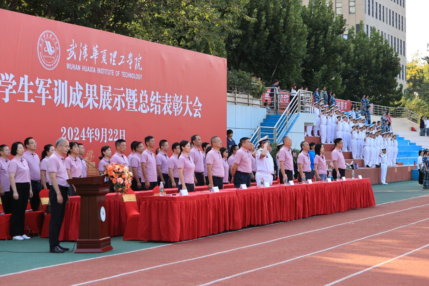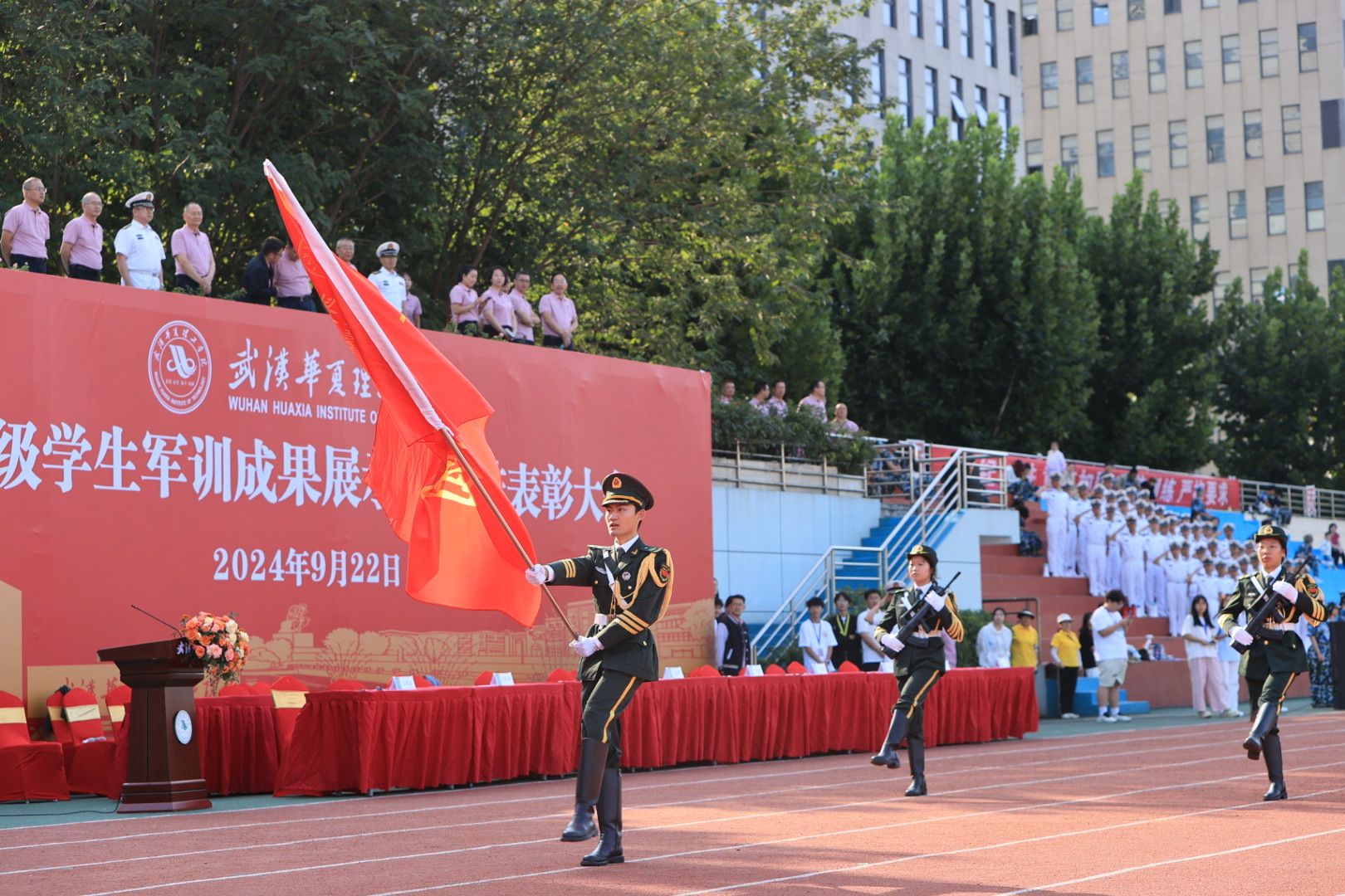 9月22日上午,beat3652024级学生军训成果展示暨总结表彰大会在田径场隆重举行。全体校领导,承训部队官兵,各职能部门负责人,各学院院长、书记、师生代表以及全体2024级新生出席。大会由副校长丁成忠主持。