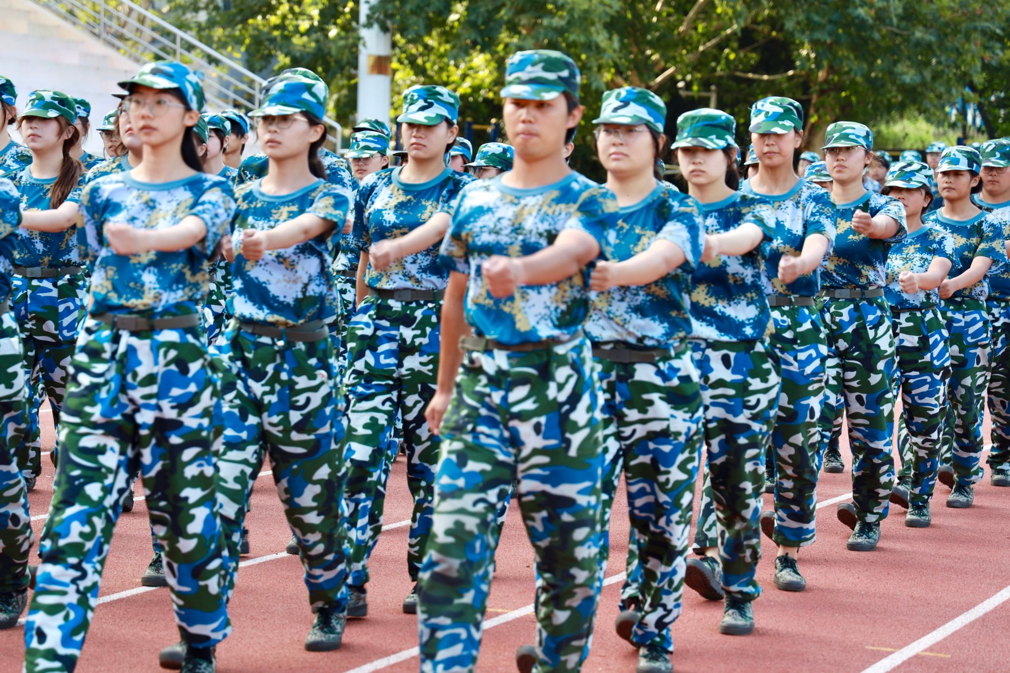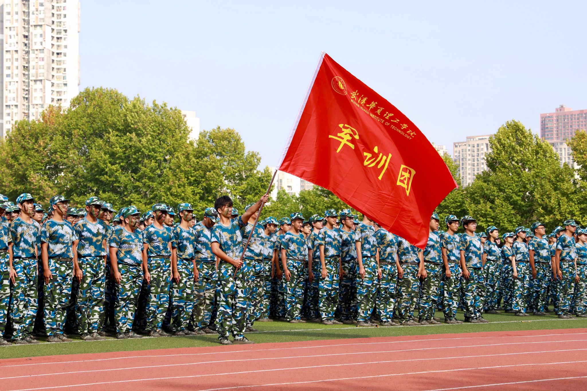 伴随着激扬雄壮的音乐,3000余名参训学生身着整齐划一的蓝色迷彩服,整装列队,怀着饱满的热情和昂扬的斗志准备接受检阅。