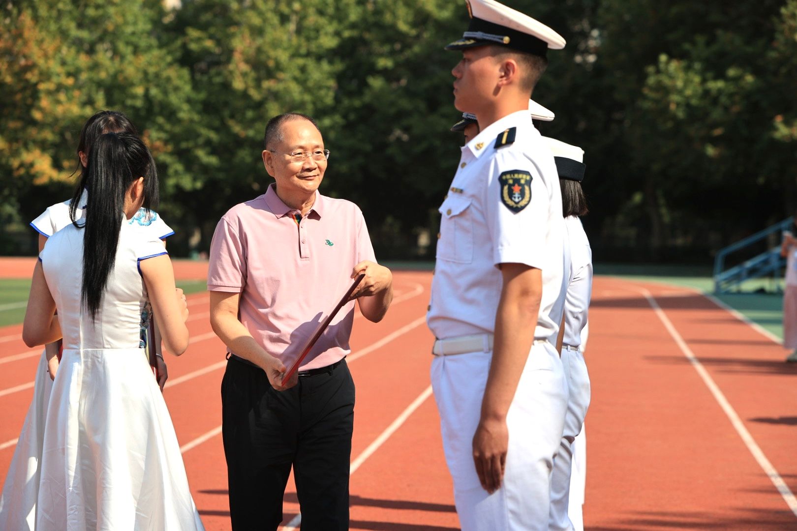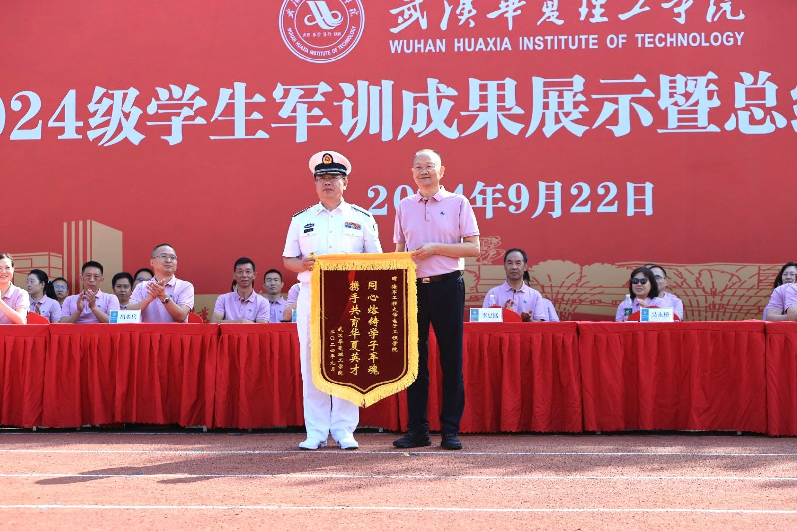 党委副书记、副校长李海民作军训总结报告。他代表学校向为此次军训付出辛勤汗水的全体教官表示衷心感谢,向始终服务在一线的辅导员、学长班主任、医务工作者和志愿者表示崇高敬意,向积极参加并圆满完成军训的同学致以诚挚问候。