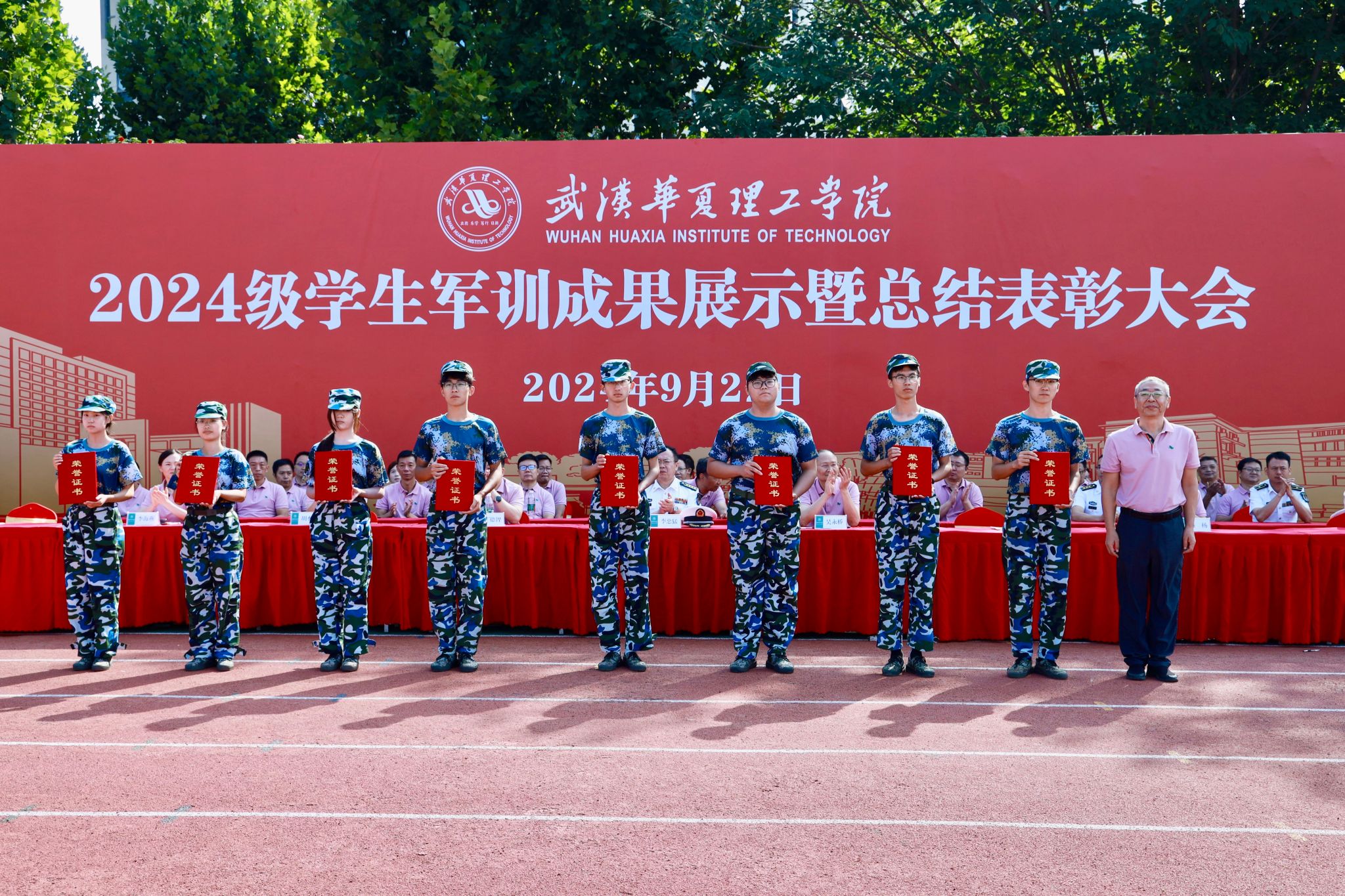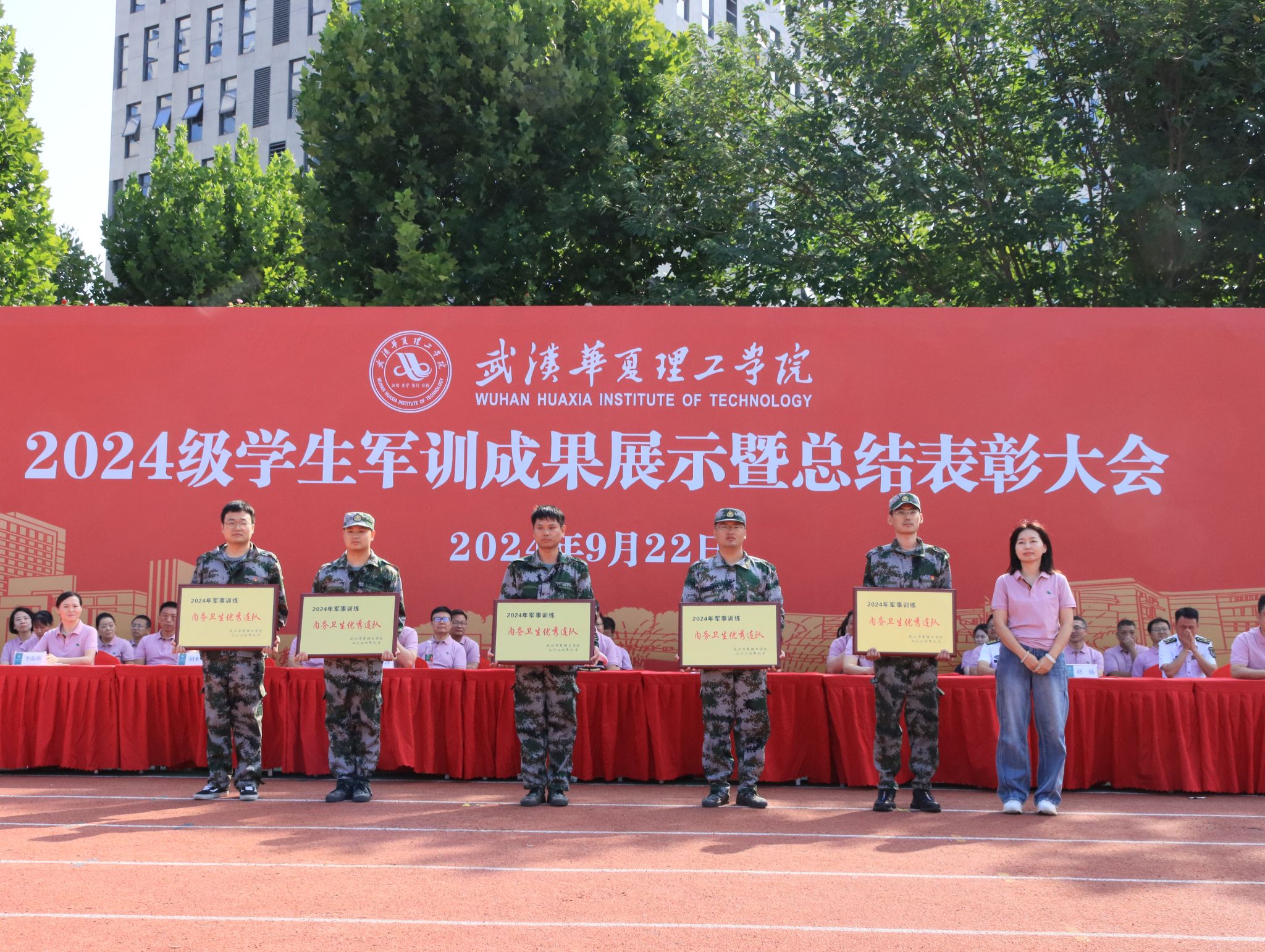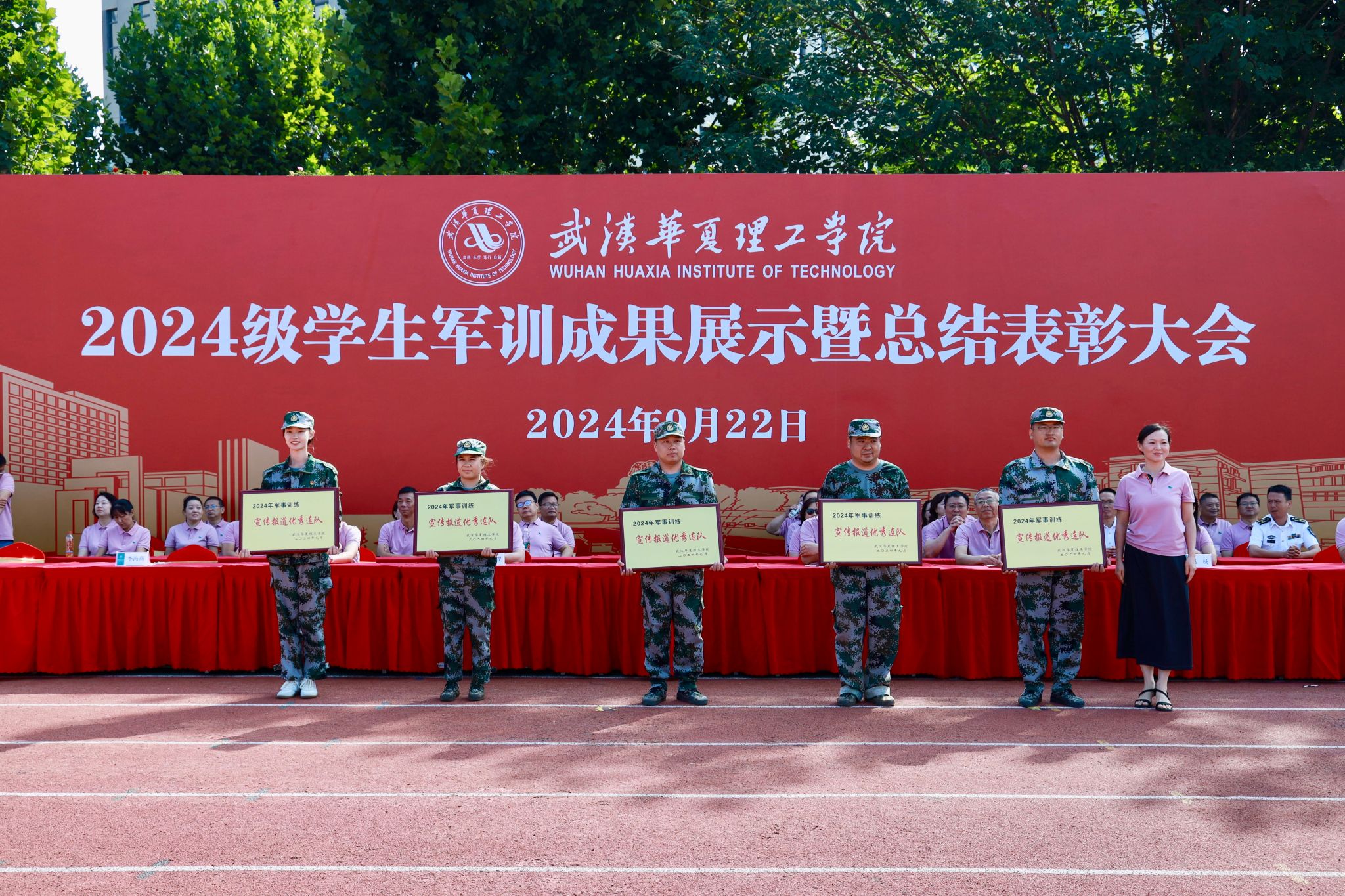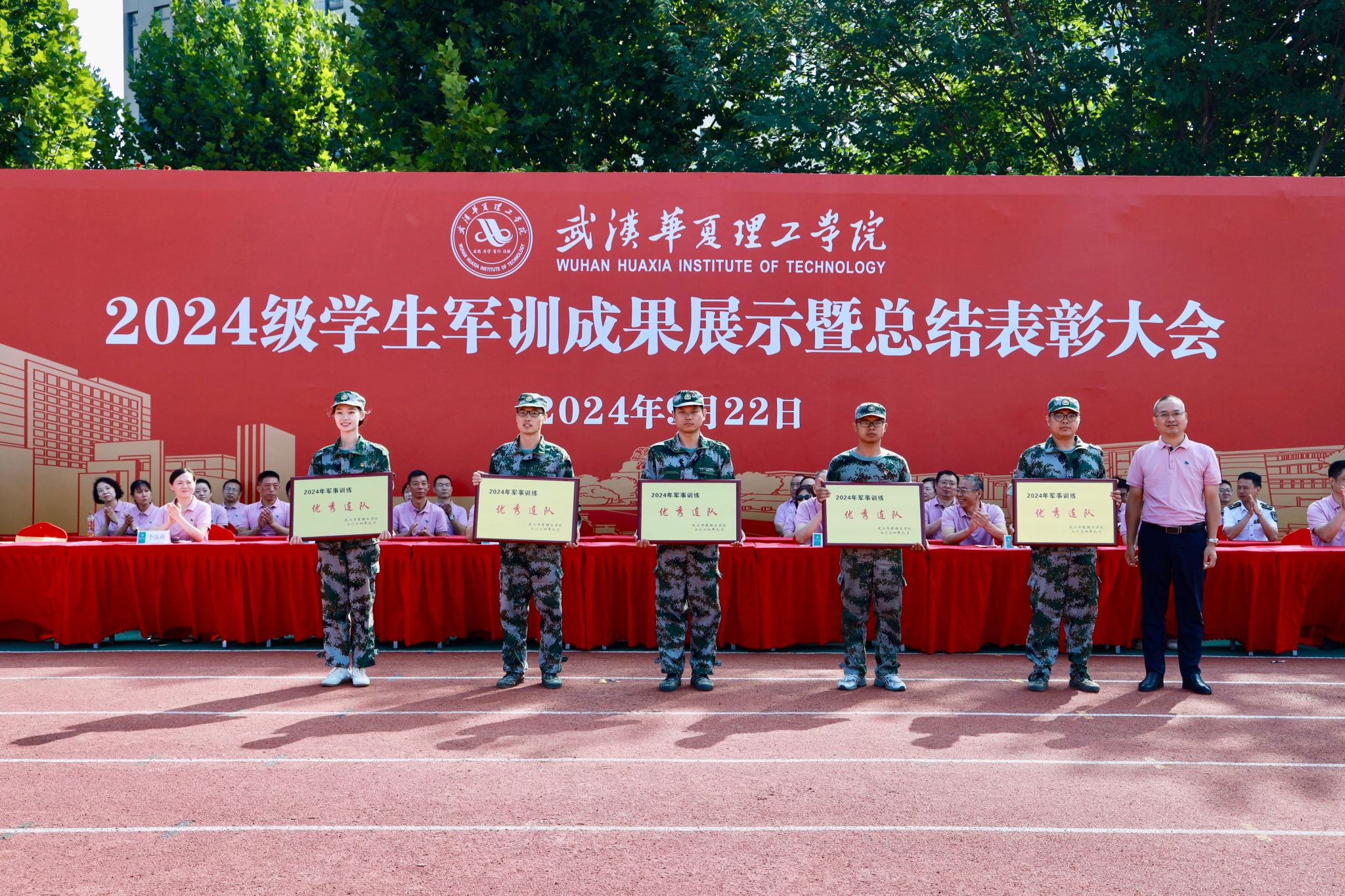 党委书记丁德智宣读《关于表彰2024级新生军训工作先进集体和先进个人的决定》,对受到表彰的先进集体和个人分别授予宣传报道优秀连队奖、内务卫生优秀连队奖、军训优秀连队奖、优秀学员、优秀指导员、优秀教官等荣誉称号。