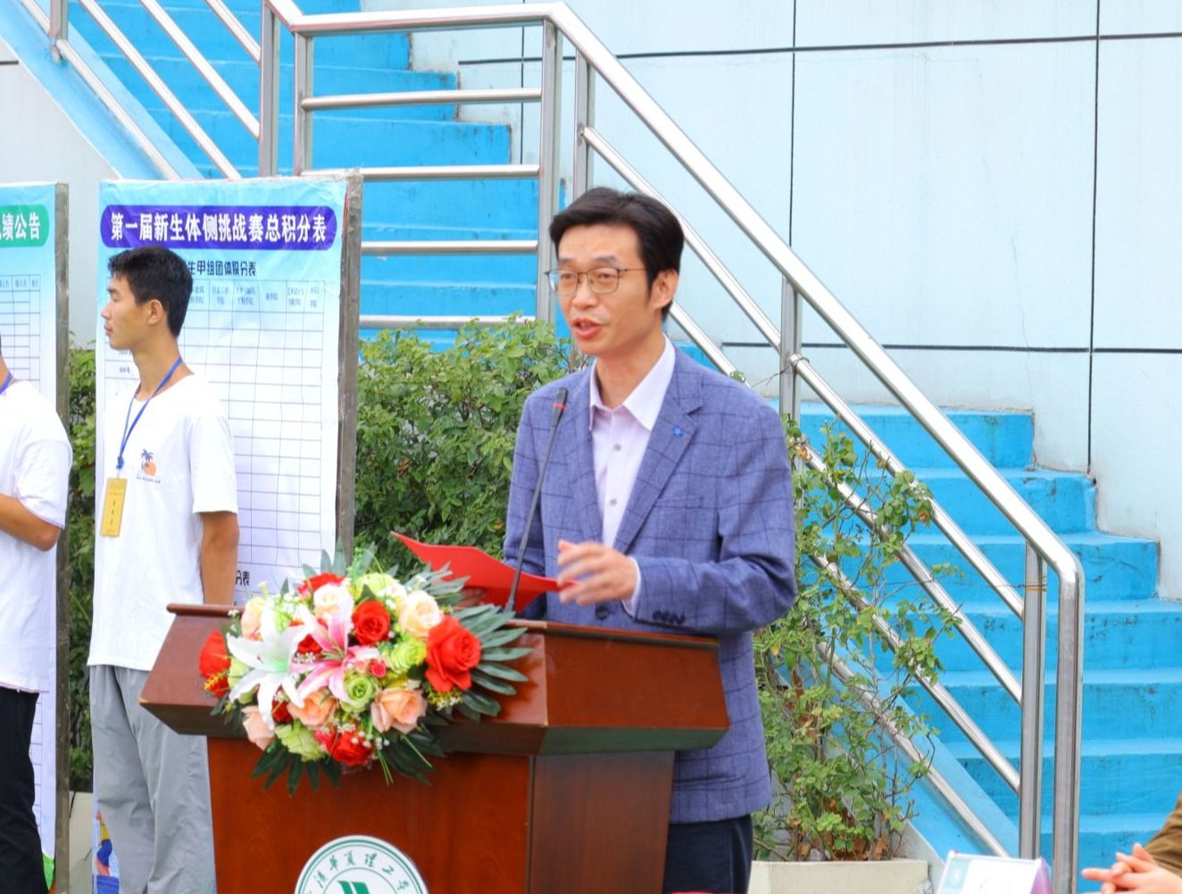校党委副书记、副校长、体育运动委员会主任李海民致辞。他指出,本次校园体育文化节精心设计了《国家体质健康标准》挑战赛、华夏体育嘉年华、师生同乐系列赛三大板块,希望全体师生积极投身校园体育文化节的各项活动中,尽情挥洒汗水,释放青春活力,感受体育魅力,领悟体育精神。同时以此次活动为契机,大力营造学校体育文化氛围,让珍视健康、热爱体育、崇尚运动、积极向上的理念在校园里蔚然成风。