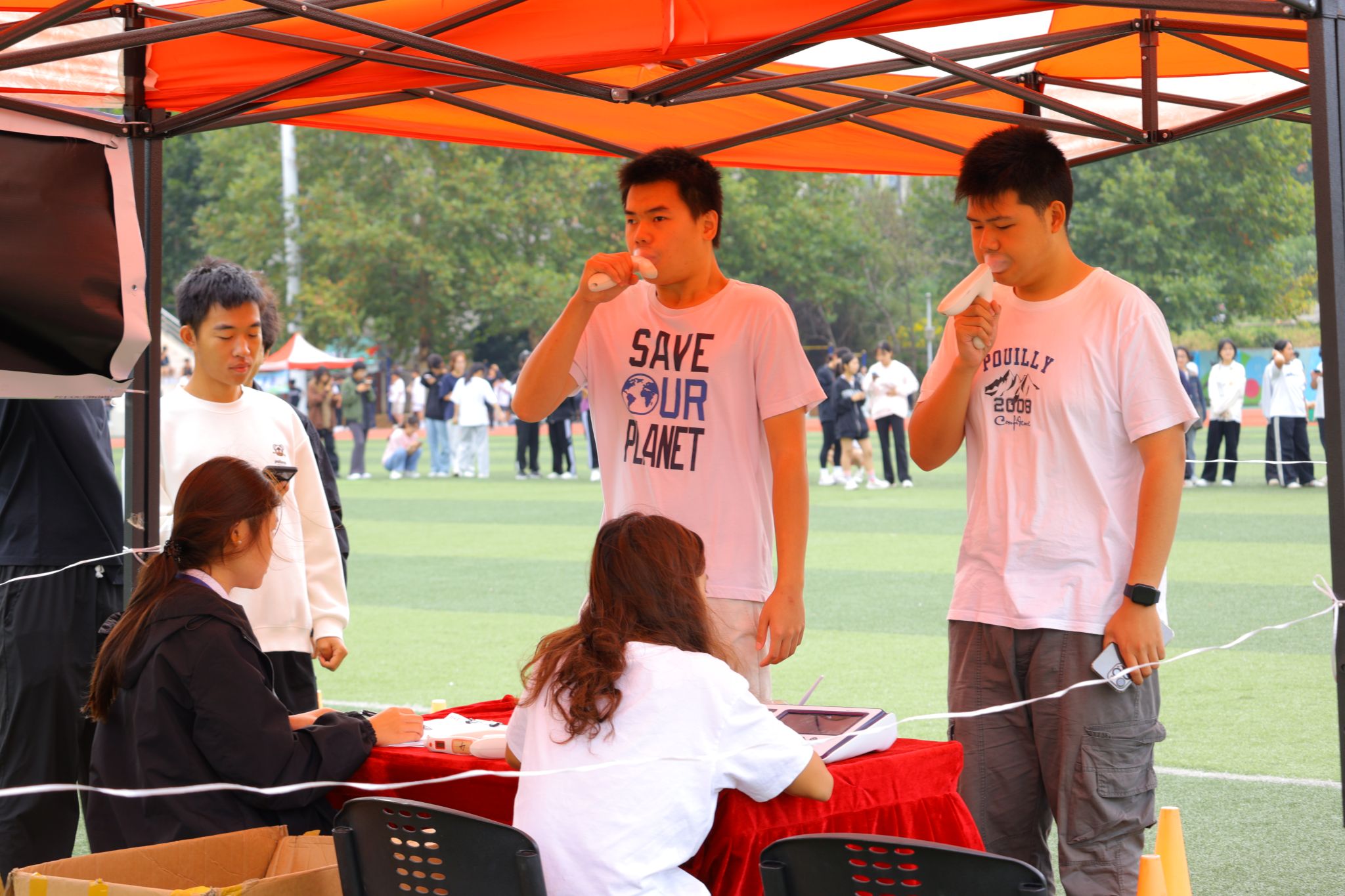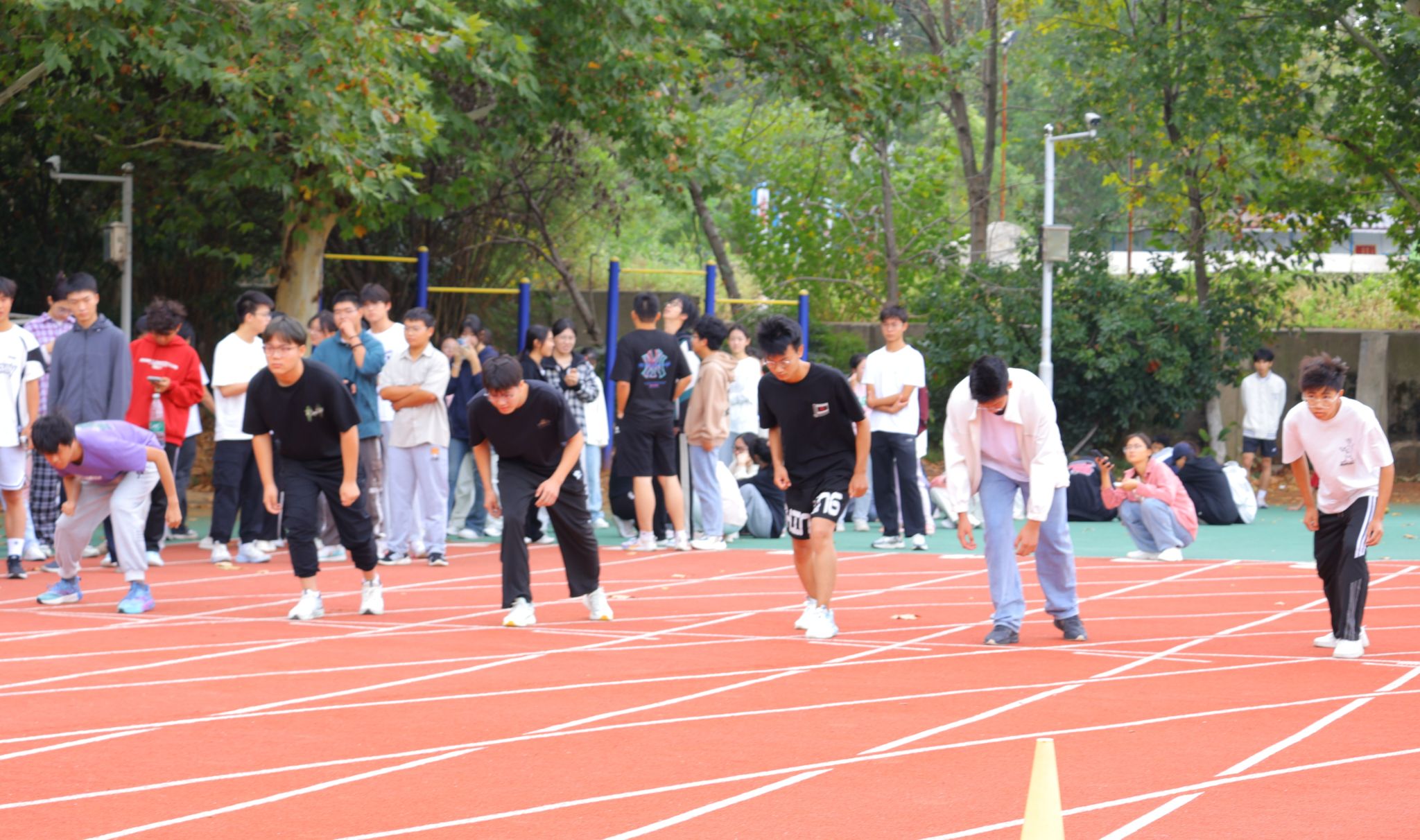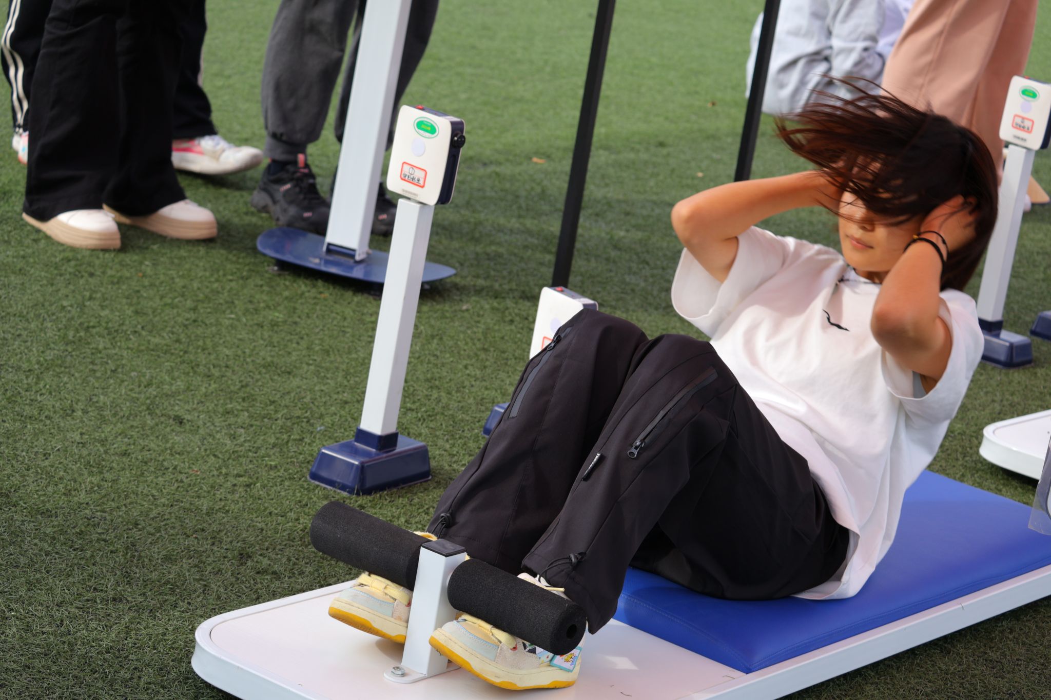 开幕式结束后,体测挑战赛正式开始。五十米短跑的赛道上,参赛选手们个个蓄势待发。裁判一声令下,选手们如离弦之箭般,风驰电掣般奔向终点。在仰卧起坐、立定跳远、引体向上、坐位体前屈及肺活量测试区,选手们都全神贯注,用顽强的毅力挑战自己的极限,展现出良好的身体素质和精神风貌。