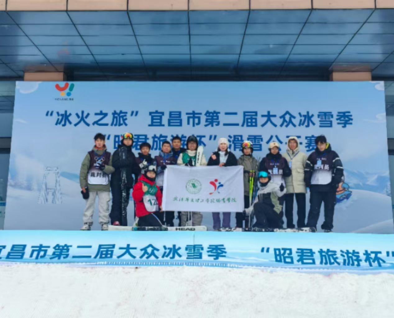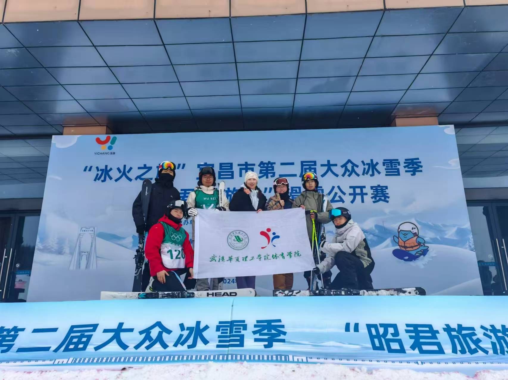 12月21日至22日,第二届大众冰雪季“昭君旅游杯”滑雪公开赛在湖北省宜昌市五峰国际滑雪场举行。beat365体育学院师生首度携手出战,获团体亚军。休闲体育专业1225班学生唐权获双板高山大回转男子组第六名。学校7名体育学子担任比赛裁判工作。