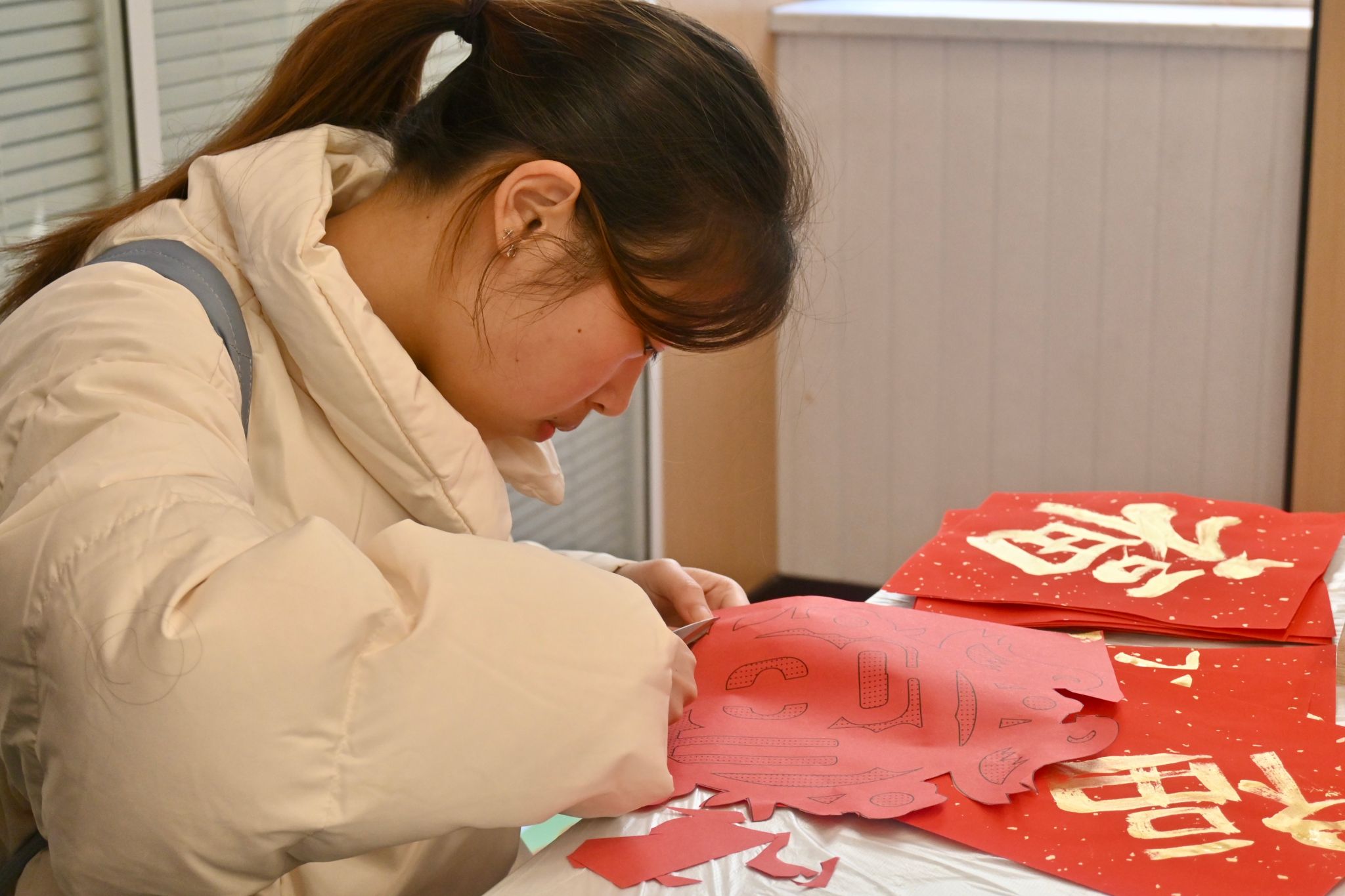 其中,非遗剪纸活动展示了中国传统剪纸艺术的精湛技艺。师生们在专业老师的指导下,学习如何剪出各种精美的图案,感受剪纸艺术的独特魅力。