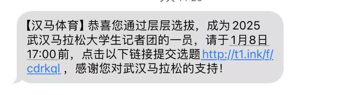 接下来,主办方将安排经验丰富的记者为所有入选记者团的大学生提供专业培训。赵珂瑜将与其他大学生记者一同,在专业媒体记者的带领下,深入2025汉马赛事现场,从大学生的独特视角捕捉赛事的精彩故事和难忘瞬间。