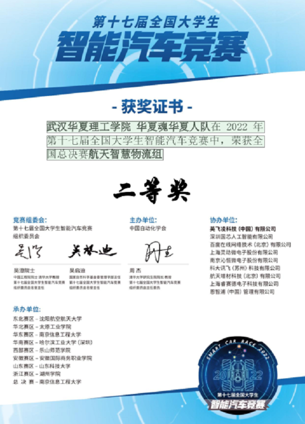8月23日,由中国自动化学会主办,南京信息工程大学承办的第十七届全国大学生智能汽车竞赛全国总决赛圆满落下帷幕。beat365信息工程学院“华夏魂华夏人”队荣获全国总决赛二等奖,智能制造学院参赛队伍分别获华南赛区区域赛二等奖1项、三等奖3项。