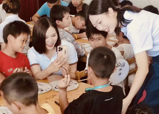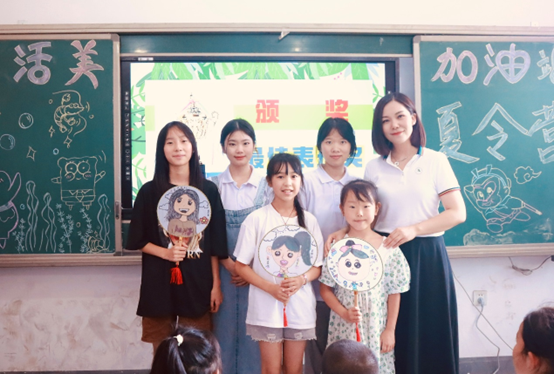 多名实践队队员则担任课程助教,在分组指导手工绘画的过程中拉近与孩子们的关系。让队员李湘熙感到惊喜的是,之前连笔都不会握的 6岁小朋友杨西林,在她的帮助下也开始愿意尝试绘画了,她说:“我好像看到了这次社会实践的意义,在我的陪伴下,小朋友们真正成长了一小步。”