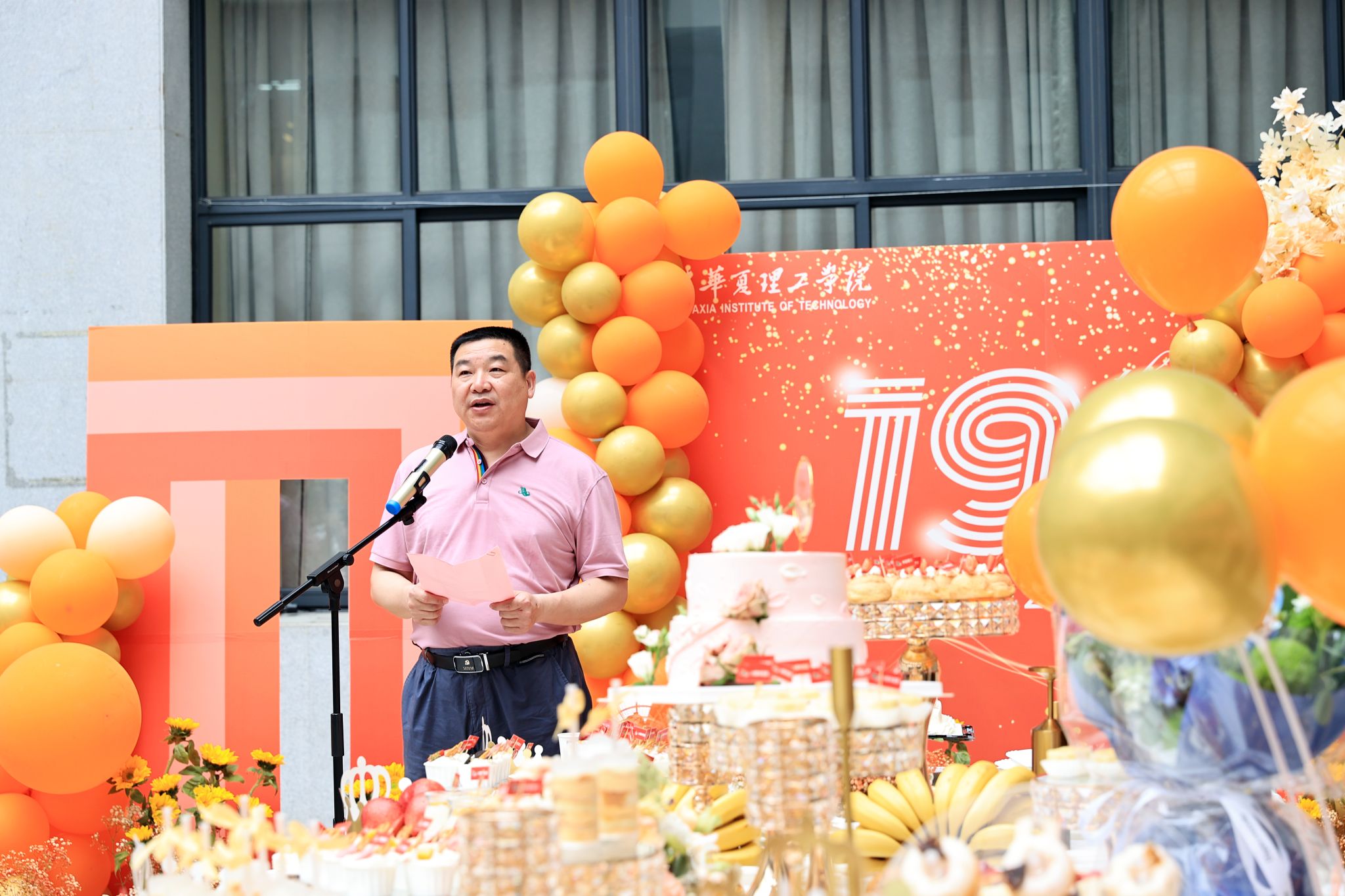 “一岁一礼,祝华夏十九岁生日快乐!”校领导和教职工代表共同切下生日蛋糕,全体人员共唱生日歌、许愿并合影留念。