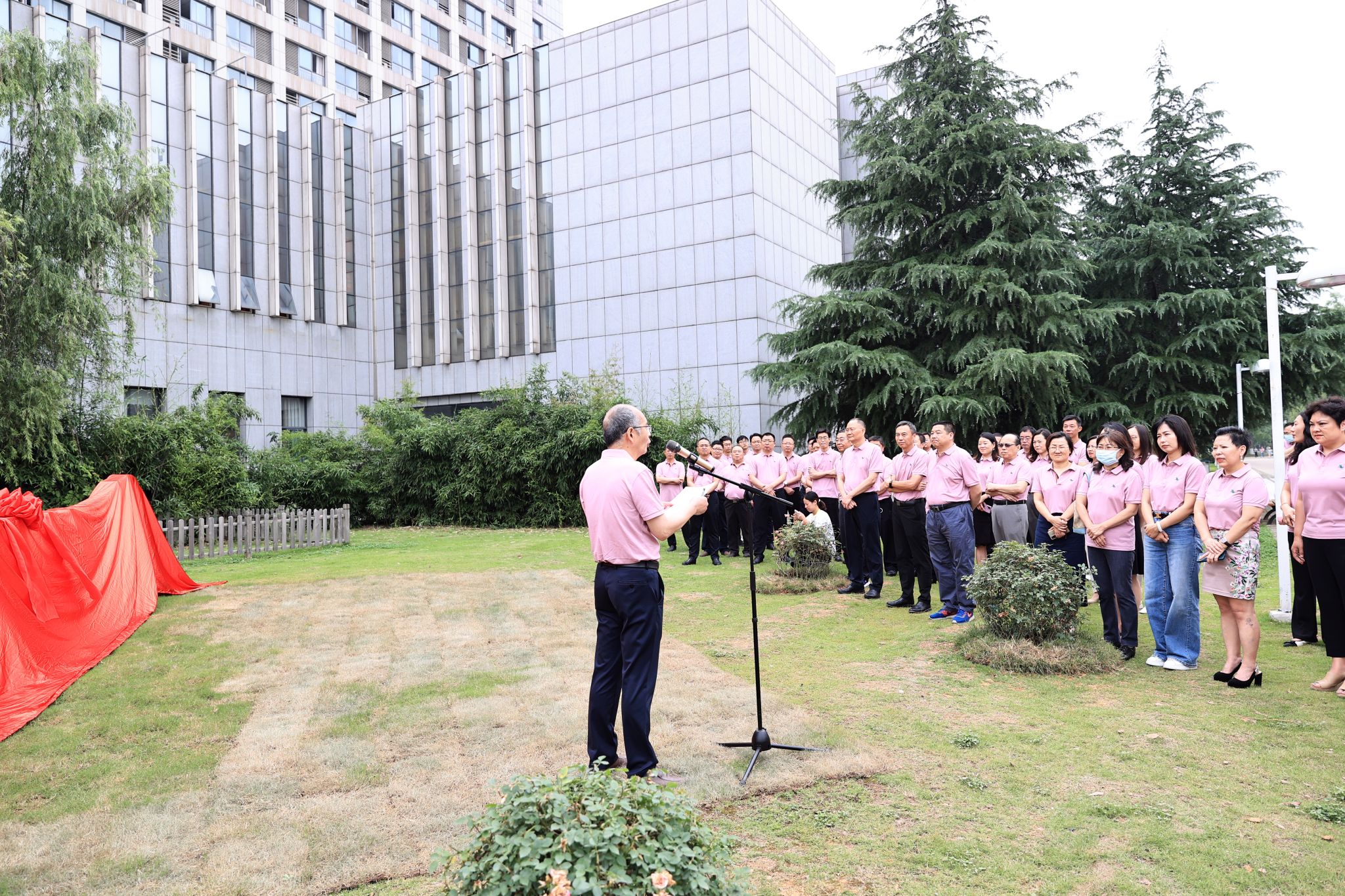 伴随着热烈的掌声,董事长张晓东、校长吴永桥、党委书记丁德智和各学院院长一起为“我爱华夏”新景观揭幕。