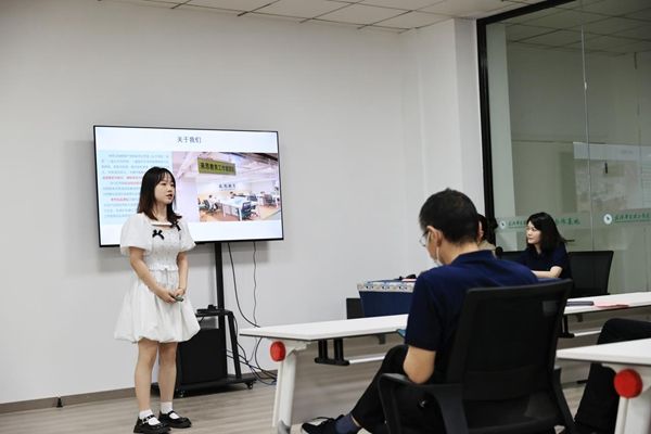 来思教育工作室成员、网媒1202班张晶雯同学介绍了工作室的业务范围和成立以来开展的工作。她表示,在工作室的一年半里接触到了很多项目,在新媒体运营、活动主持、主题文创制作等方面进行了有益的实践,不仅巩固了专业知识,锻炼了实践能力,也变得更加自信。感谢学校与工作室的培养,今后她将努力成长为更加优秀的学生负责人。