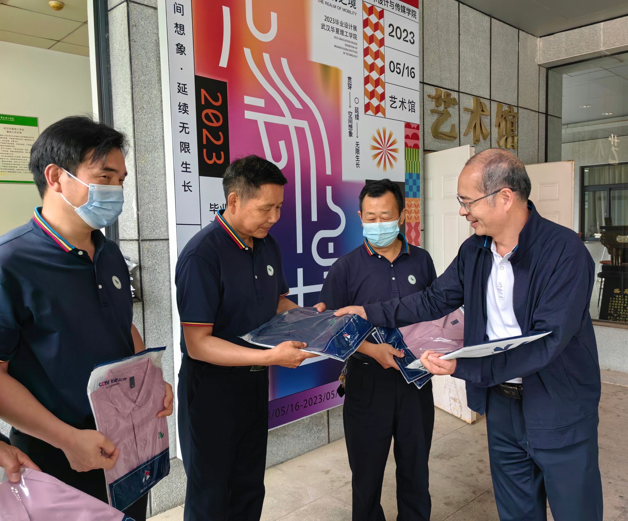 丁成忠一行先后来到学校保安队、水电班、学生寝室宿管处,与基层员工们亲切交谈,了解他们的日常工作和生活,并为他们送去学校最新制定的校服。