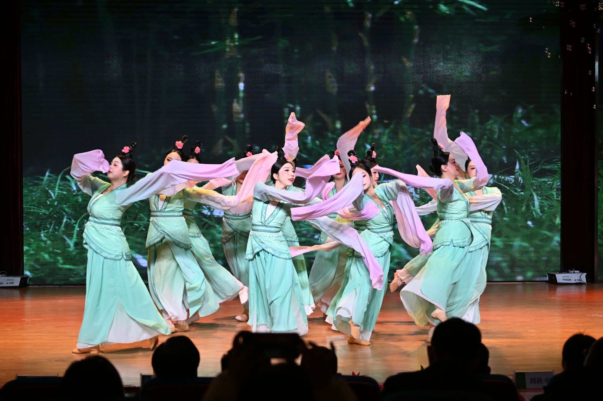 电影配音秀用流利外语和多变声线将《疯狂动物城》与《白蛇缘起》巧妙串烧,展现教师深厚语言功底;美声合唱《春风十万里》将教职工对生活的热爱和对未来的憧憬化作音符,吹进听众心间;民族舞蹈《踏春》中,舞者青衫善舞若春风拂柳,水袖翻飞如春日精灵,灵动演绎踏春之景。