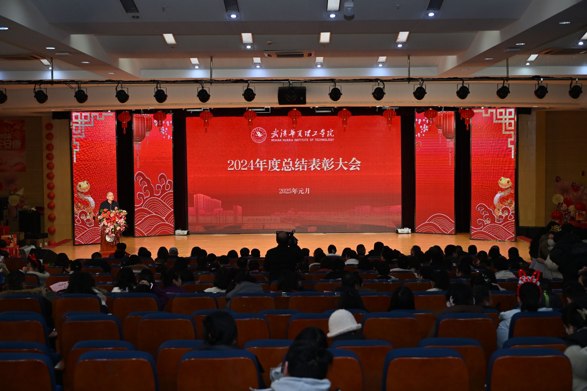 金蛇献瑞迎新春,奋楫逐梦谱华章。1月10日下午,2024年度总结表彰大会暨2025年“灵动华夏”迎新春联欢会在学术报告厅举行。全体校领导与全校教职工欢聚一堂,共同回顾过去一年的成果,喜迎新年的到来。大会由副校长丁成忠主持。