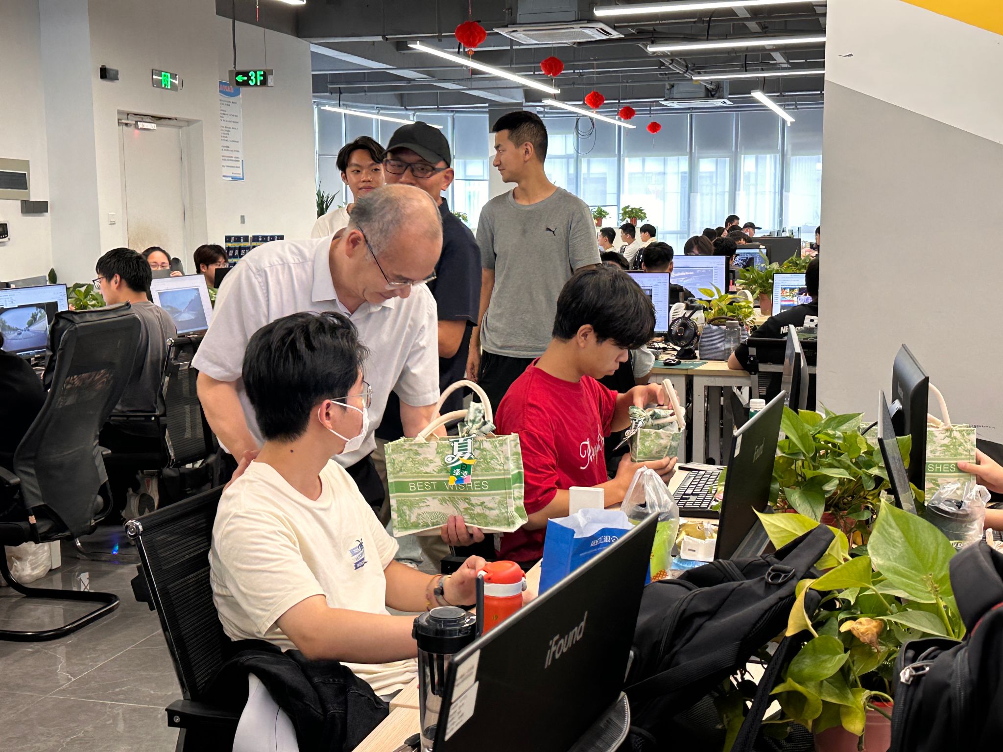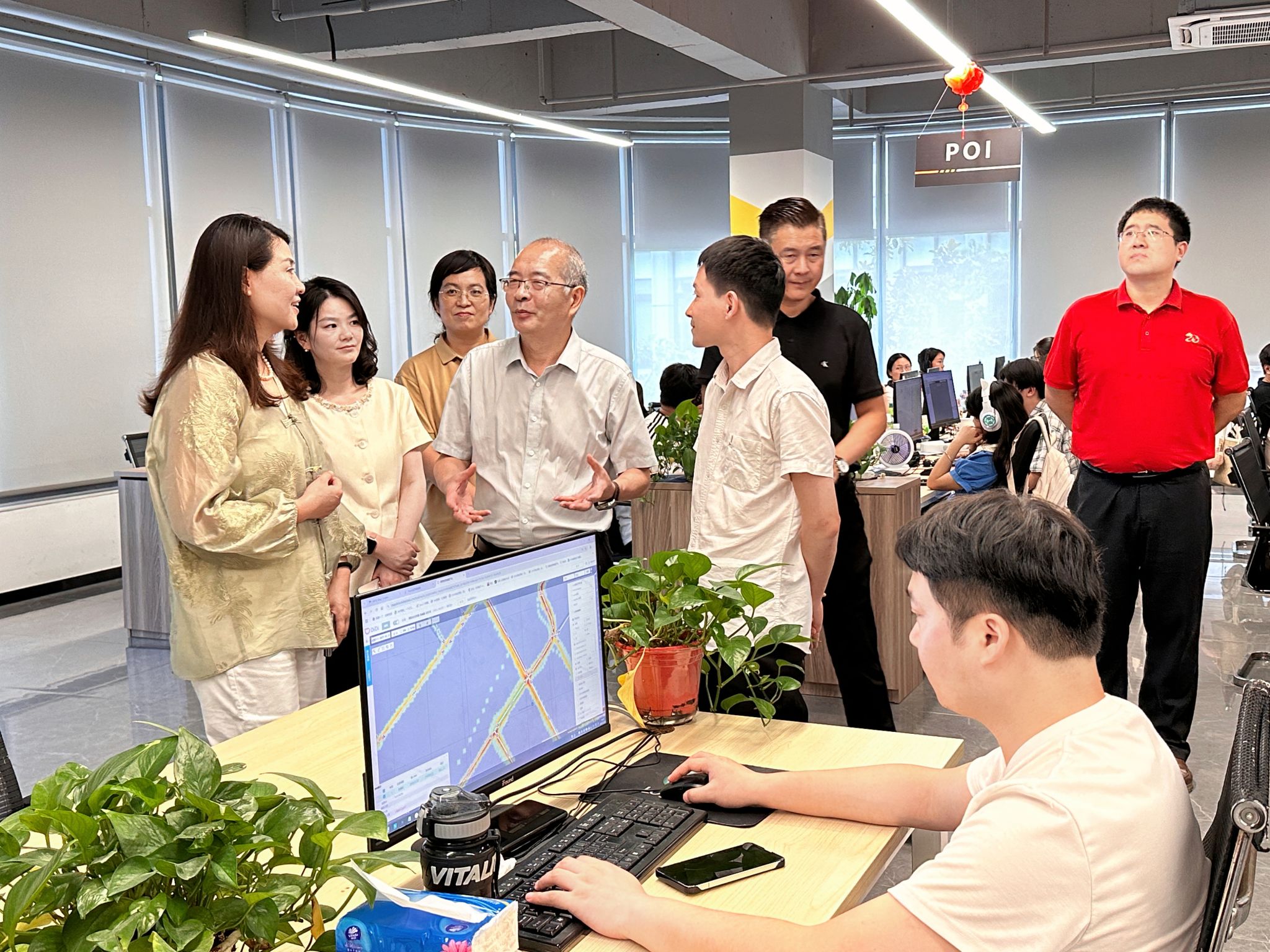 签约前,丁成忠一行深入图联科技数据处理中心看望慰问学校首批9名管培生和驻场教师,了解了学生参与自动驾驶数据标注等项目进展,并向师生发放防暑慰问品。计算机科学与技术专业学生李浩和刘诗涵分享实践感悟时说,“得益于学校和企业的联合保障与系统培训,我们快速克服了初期的紧张和畏难情绪,如今已能独立完成高速路标点云标注。两周实战不仅重塑了我们对AI数据行业的认知,更锤炼了未来职场必备的综合素养。”