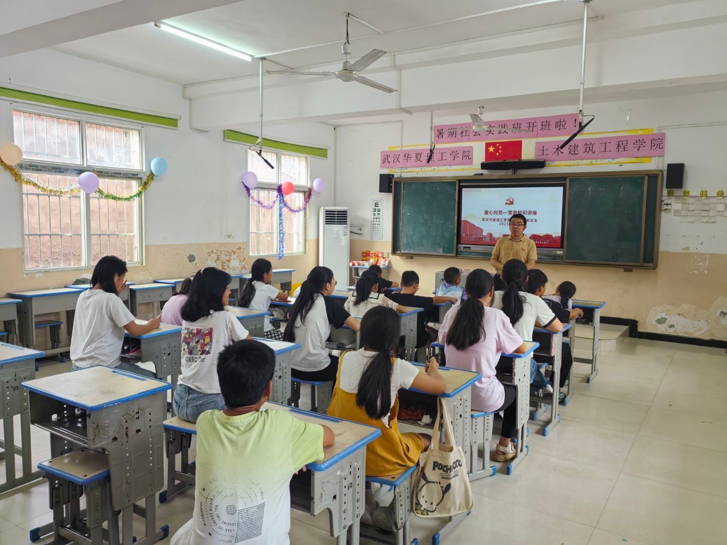 7月17日至18日,土木建筑工程学院“普润乡村·青春发声”实践队在beat365定点帮扶丹江口市的龙山镇彭家沟小学开班。校长助理、工会主席李海燕作开班讲话,土建学院党总支副书记徐双立以“童心向党”为题首日授课。