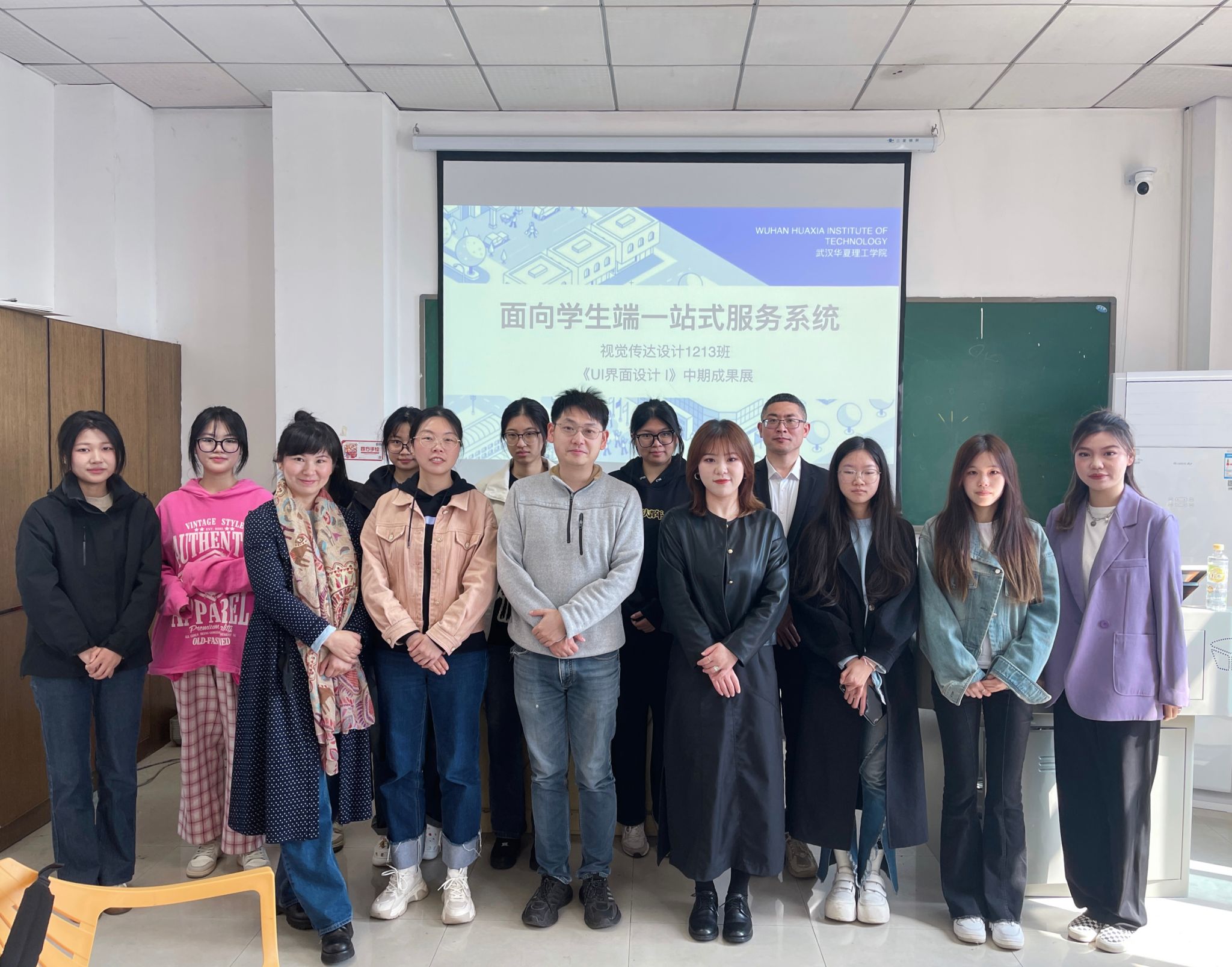 2024年4月9日早上,视觉传达设计教师祝雨沁及1213班同学在艺术楼844-2举办了UI界面设计课程中期汇报,汇报内容是关于华夏学生端一站式服务App设计,参与汇报的老师有学工部郝志康部长、信息办赵君老师和刁文源老师、艺术学院邓婧副院长和熊煜琳老师。