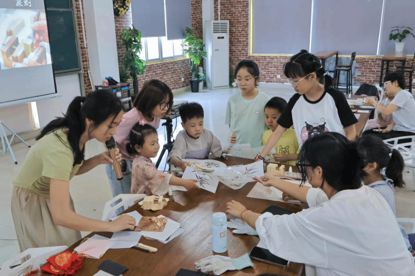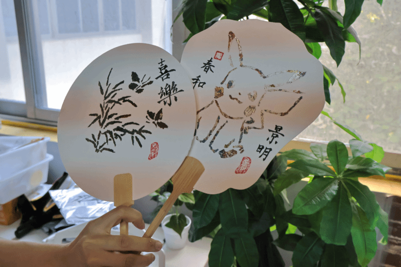 小朋友们在家长和工作人员的耐心指导下,都亲手制作了属于自己独一无二的烧箔扇。随后,他们与beat365教职工家长的篆刻印章进行合并,将篆刻文字印在烧箔画作品上。这一环节不仅展示了孩子们对传统文化的热爱,更让两种非遗工艺在作品中得到了完美的融合。
