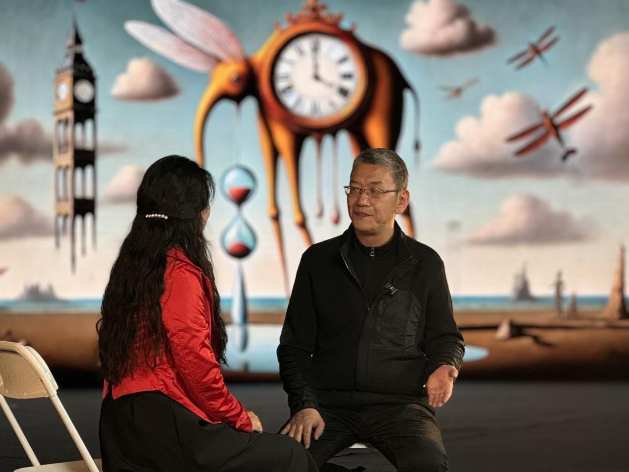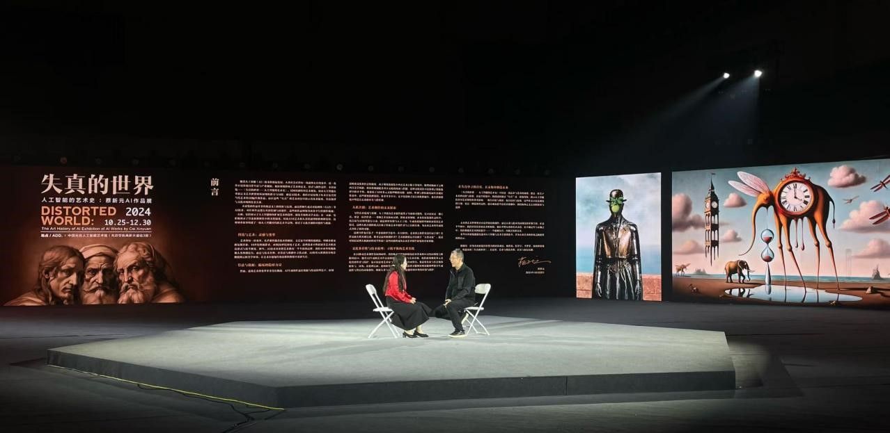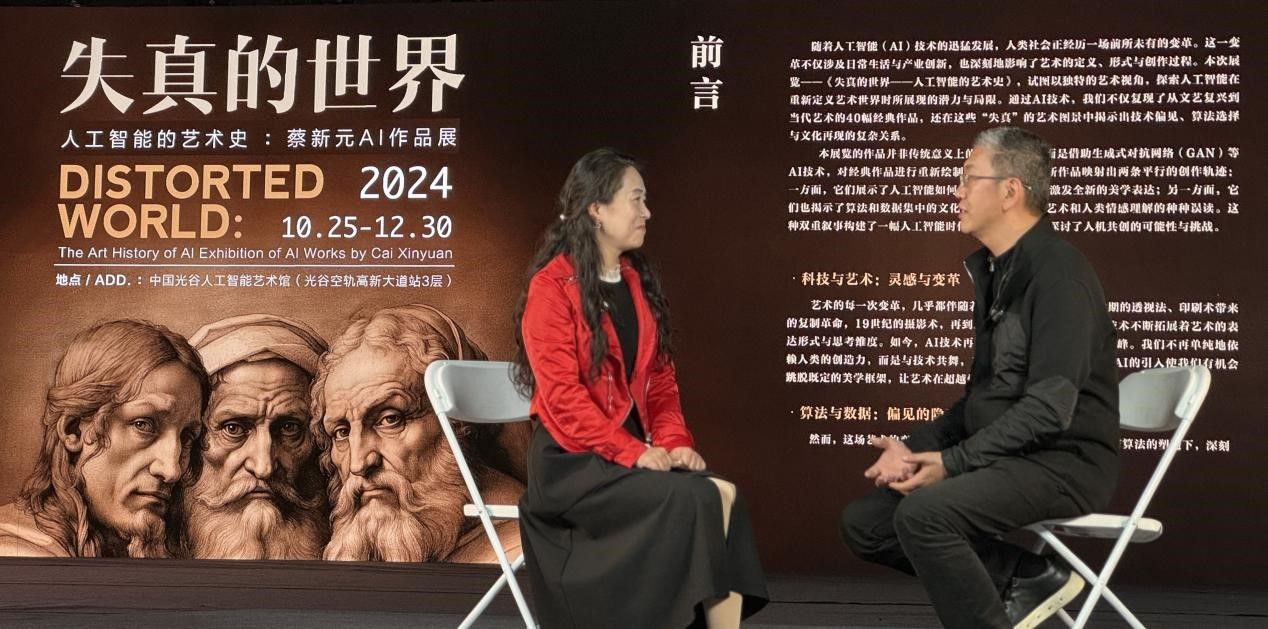 10月25日至30日,首届“中国光谷人工智能艺术大会暨《失真的世界》人工智能的艺术史:蔡新元AI作品展”在湖北省武汉市长江文创产业园举办,引发业界广泛关注。我院数字媒体艺术系吴杨婷老师借此机会对蔡新元教授进行了一次深入的访谈,围绕AI在艺术创作、日常生活中的影响以及在教育领域中的应用等关键问题对蔡教授进行了专访。数字媒体艺术系部分师生受邀参与此次活动。