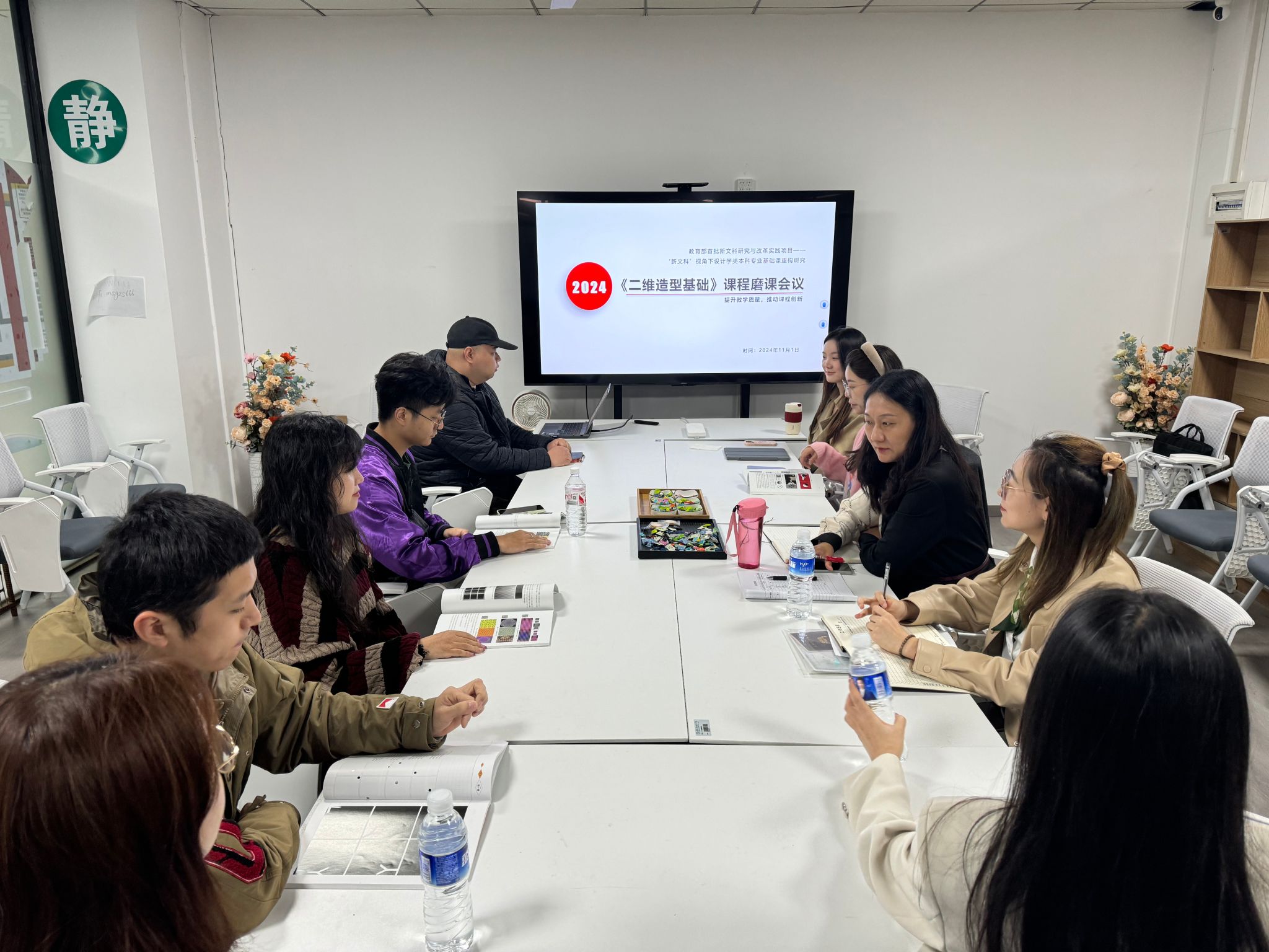2024年11月1日上午10点,基于教育部首批新文科研究与改革实践项目设计学类本科专业基础课重构研究课题,艺术设计与传媒学院在四楼名师工作室召开了《二维造型基础》课程磨课会议。会议由张天洁副院长主持,李娇院长和各专业负责教授该门课程的老师共同参与。