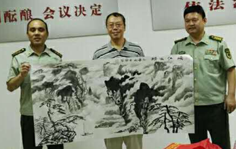 周老师为军人们创作的漫画作品颇受大家的喜爱,并当场绘制了国画《峡江云起》赠送给武警总队,并受到了一致好评。