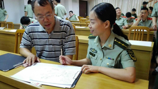 周老师为武警战士讲解作品