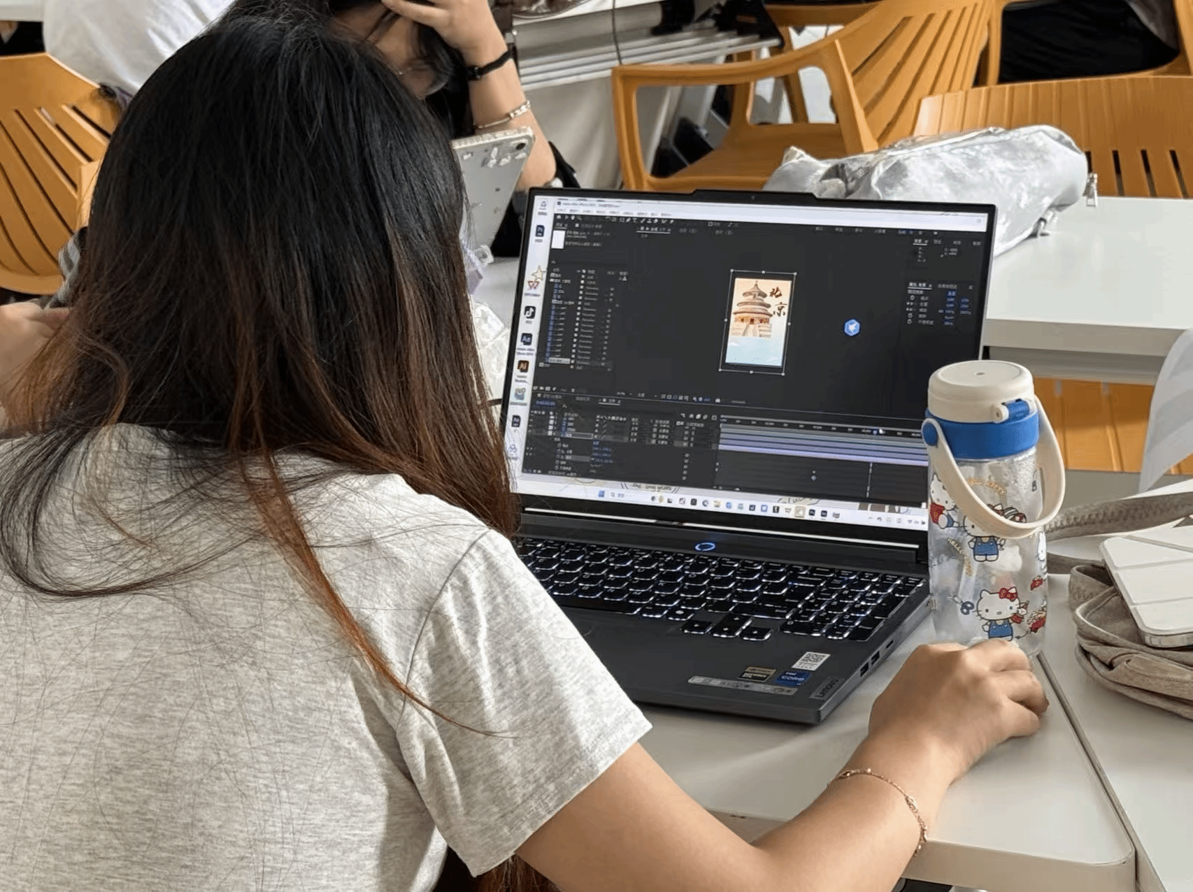 汇报现场,多组作品亮点突出,肖雨馨老师表示,翻转课堂模式打破了传统教学边界,既让学生掌握动态图形设计的技术逻辑,更引导其深入理解传统元素的文化内涵。此次汇报的作品不仅是课程作业,更是年轻一代对非遗与地域文化的创新解读,为传统美学的现代表达提供了新思路。未来,课程将持续深化 “设计赋能文化传承” 的教学理念,推动更多传统元素以动态视觉形式走进大众视野。