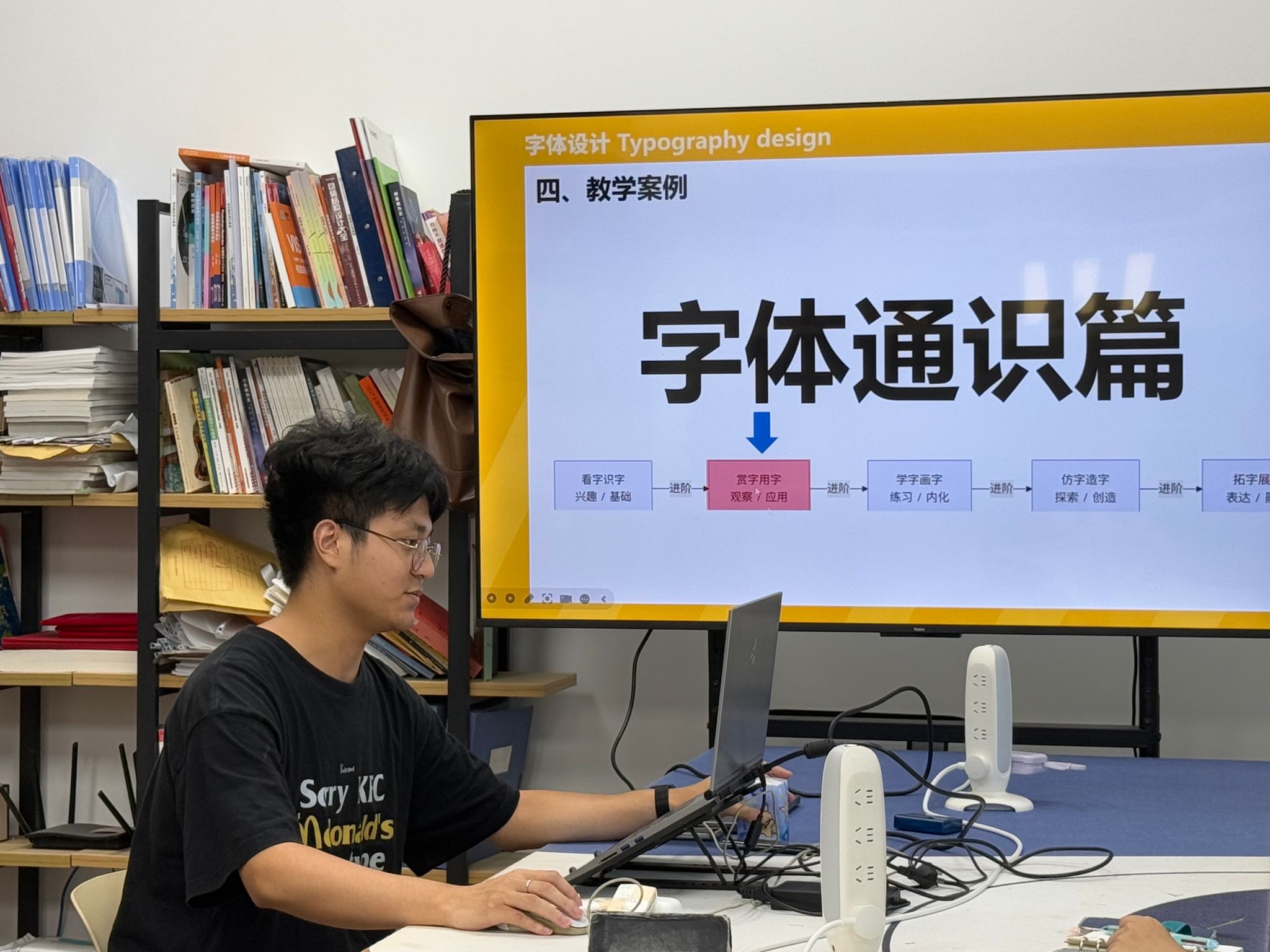 课程伊始,肖畅老师回顾了之前该课程的教学经历,并展开教学反思,期望通过更清晰的教学逻辑和更充分的教学互动来打造更高质量的课堂内容。他主要讲解的课程内容为字体通识,肖老师认为这一板块的内容枯燥复杂但在整个知识体系中又十分重要,需要通过引入丰富的案例和多样的互动方式来提高学生的积极性。