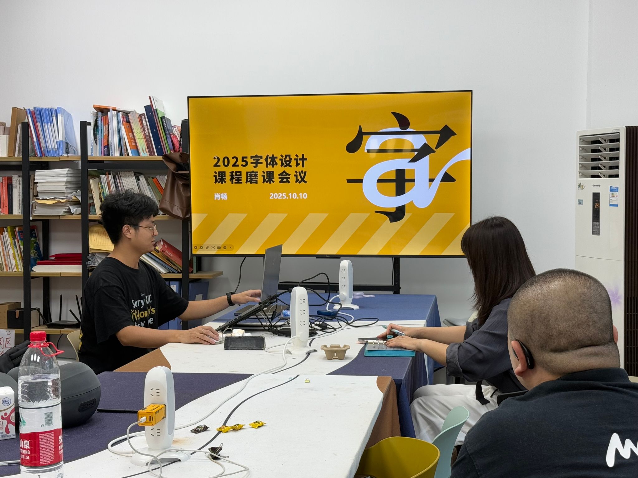 10月10日下午, 视觉传达设计系围绕《字体设计》课程展开教学磨课活动。参与本次教学磨课活动的人有课程授课教师肖畅老师,学院督导李娟教授、视觉传达设计系主任钟凡老师以及视传部分青年教师。