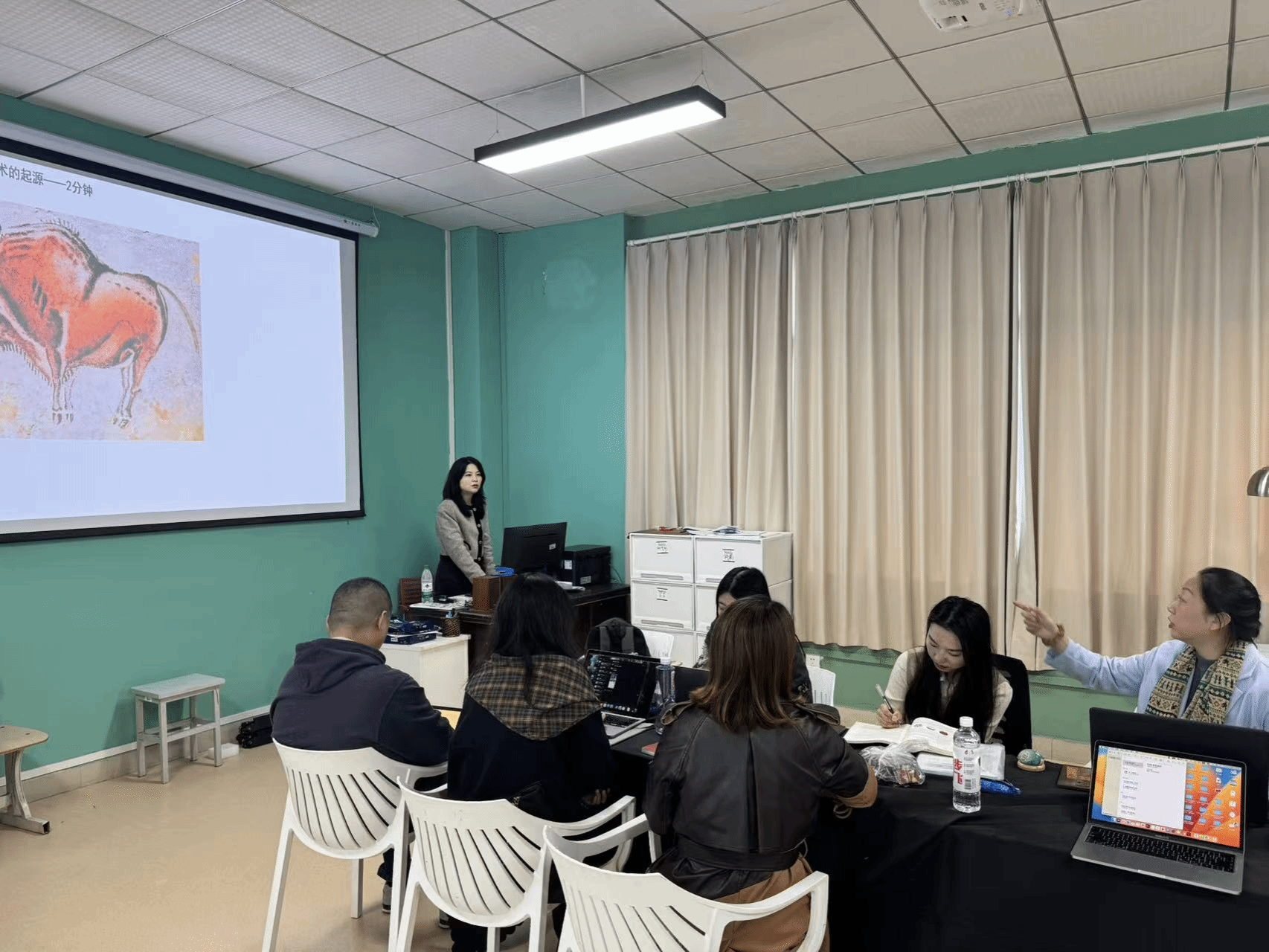 说课展示结束后,参与会议的各位教师围绕教学方案展开了热烈研讨与精准点评。老师们从教学内容的深度挖掘、教学环节的细节优化、教学重难点的精准突破等方面,提出富有建设性的指导建议。例如,针对绘画作品赏析部分,有教师建议可增加地域特色艺术案例的融入,增强学生的文化认同感;在雕塑教学环节,可通过重点解析经典作品,让学生更直观地感受雕塑艺术的空间魅力。各位教师各抒己见、畅所欲言,在思想的碰撞中共同为课程教学方案的完善出谋划策。