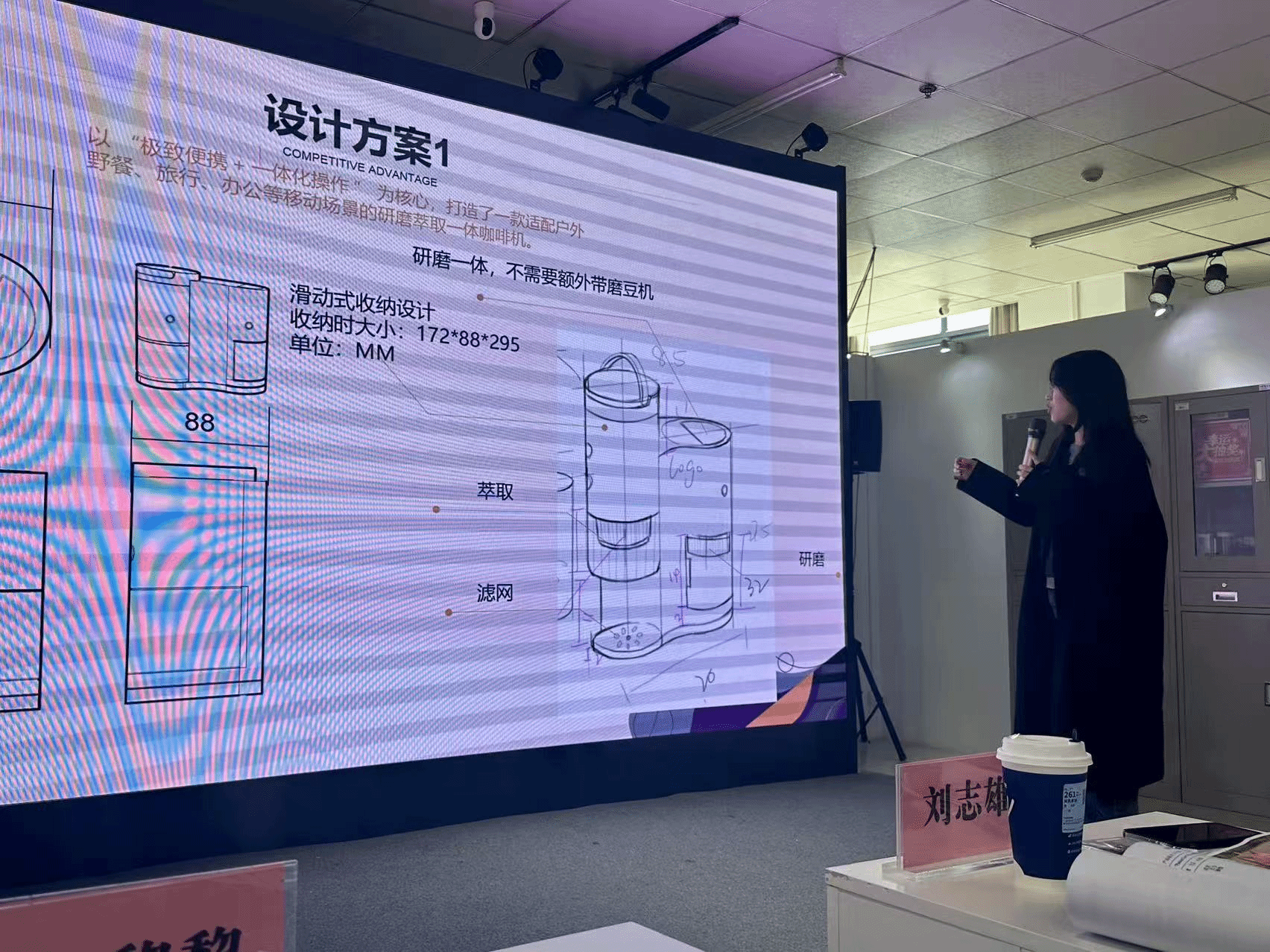 今年学生选题更趋多元,既聚焦现实问题也兼具前瞻洞察,如“萌球趣投机”陪伴型宠物玩具设计、“校能充·移动管家”校园服务类产品设计、“园桌友聚”校园“慢社交”伙伴、“施工智隔护”道路施工可移动隔护设施设计、社区共享型多功能老年代步车、武汉方言文化公共座椅、便携现磨咖啡机设计等项目,均兼具创新精神与社会关怀。这些选题源于学生对日常生活的深入观察,展现出强烈的问题意识与前瞻视野,更彰显了同学们以设计回应现实、服务社会的潜力与担当。