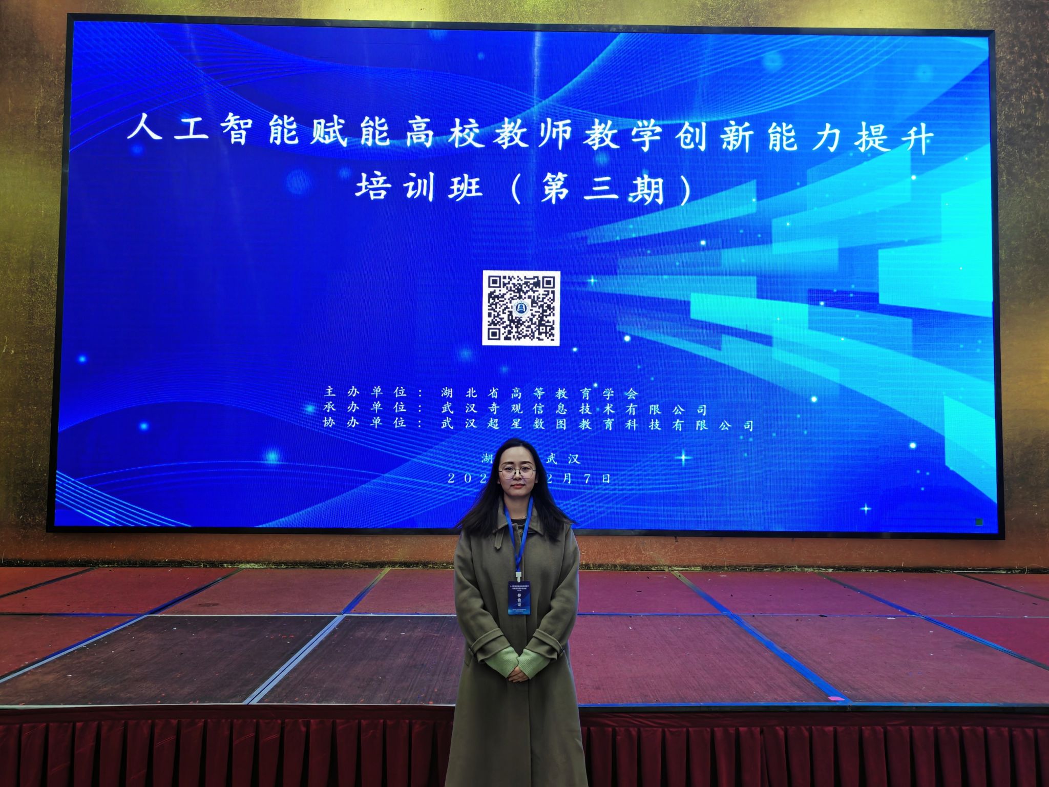 2025年12月7日,环境设计系教师孙朝旭参加武汉光谷潮漫凯瑞国际酒店举办的人工智能赋能高校教师教学创新能力提升培训班(第三期)。本次培训由湖北省高等教育学会主办,旨在深入推进人工智能与高等教育教学的深度融合,提升教师利用AI技术改进教学方法、优化教学过程的能力,并助力备战第六届全国高校教师教学创新大赛。