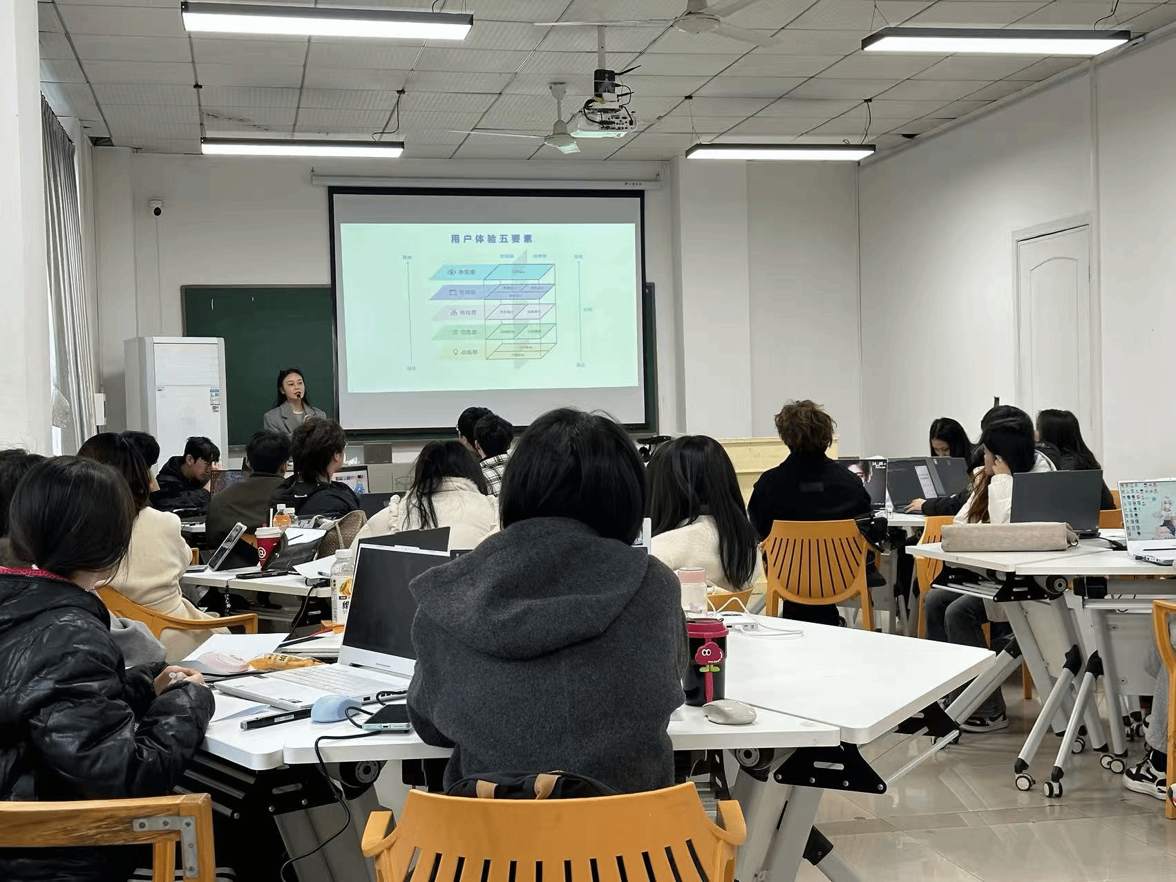 本次公开课聚焦于“用户体验五要素”这一交互设计领域的核心理论框架,旨在通过创新的教学设计,将抽象的设计方法论转化为学生可理解、可操作的知识体系。课堂以“画房子”互动游戏生动导入,侯老师首先让学生自由绘制心目中的房子,随即引入“为一款主打‘安全与信任’的家庭财务APP设计图标”的具体情境,引导学生带着明确的产品目标与用户需求进行第二轮设计。通过两轮作品的直观对比,学生深刻体会到战略层如何从根本上驱动设计方向。随后,课程以该APP为贯穿案例,层层推进,系统讲解了范围层、架构层、框架层以及表现层的内涵与关联。课堂通过连续提问、小组讨论与实时案例分析,将理论融入具体产品决策场景,学生思维活跃、互动踊跃,在实践推演中掌握了五要素自上而下、环环相扣的设计逻辑。