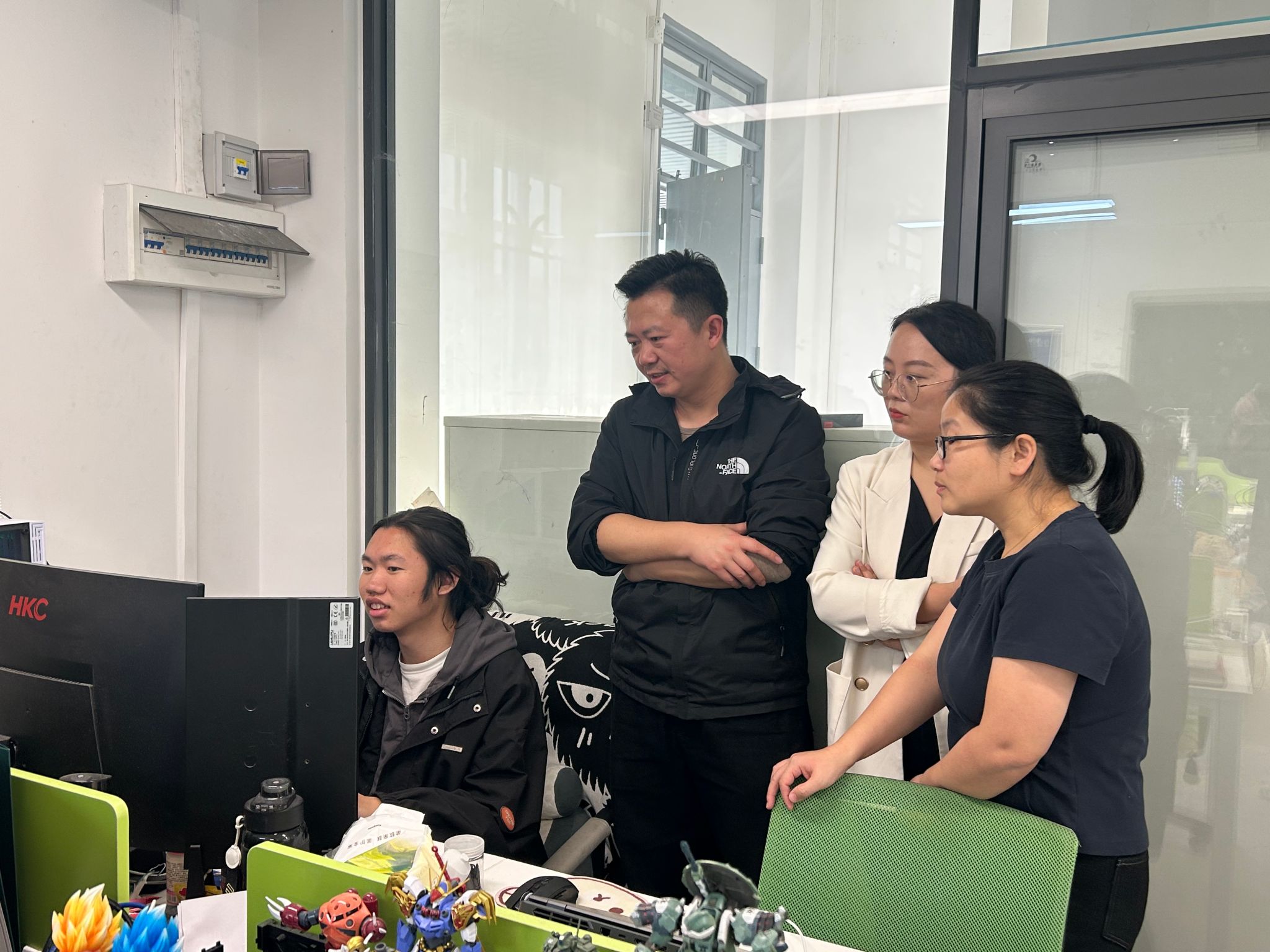 在调研过程中,曹小琴老师详细介绍了该校工作室制的教学模式。她表示,学院注重鼓励学生参与工作室实践,着力培养学生的综合实践能力与多学科交叉素养。在课程设置上,除专业基础知识外,还根据学生兴趣和就业趋势,积极开展PR、C4D、虚幻引擎等软件技能的课外培训,鼓励学生自主学习,提升其独立解决问题的能力。