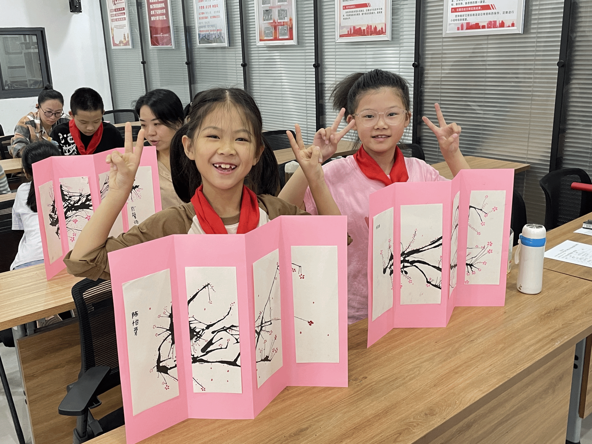 通过本次课堂,同学们纷纷表示回家之后要试试运用今天的吹墨方式进行条屏的创作。本次活动提高了同学们对条屏、梅花、吹墨的认识和理解以及动手能力。