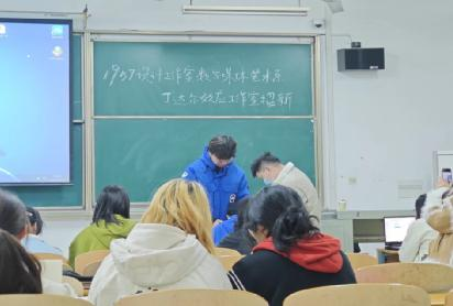 2023年11月27日晚18:30,数字媒体艺术系丁达尔效应工作室在2号教学楼307教室内开展实习部招新活动。丁达尔效应工作室着重培养学生的创新意识和实践能力,并为工作室学生提供丰富的实践机会,本次活动旨在为工作室实习部招新。此次招新活动由王烜、张冬瑾两位导师班主任共同主持。