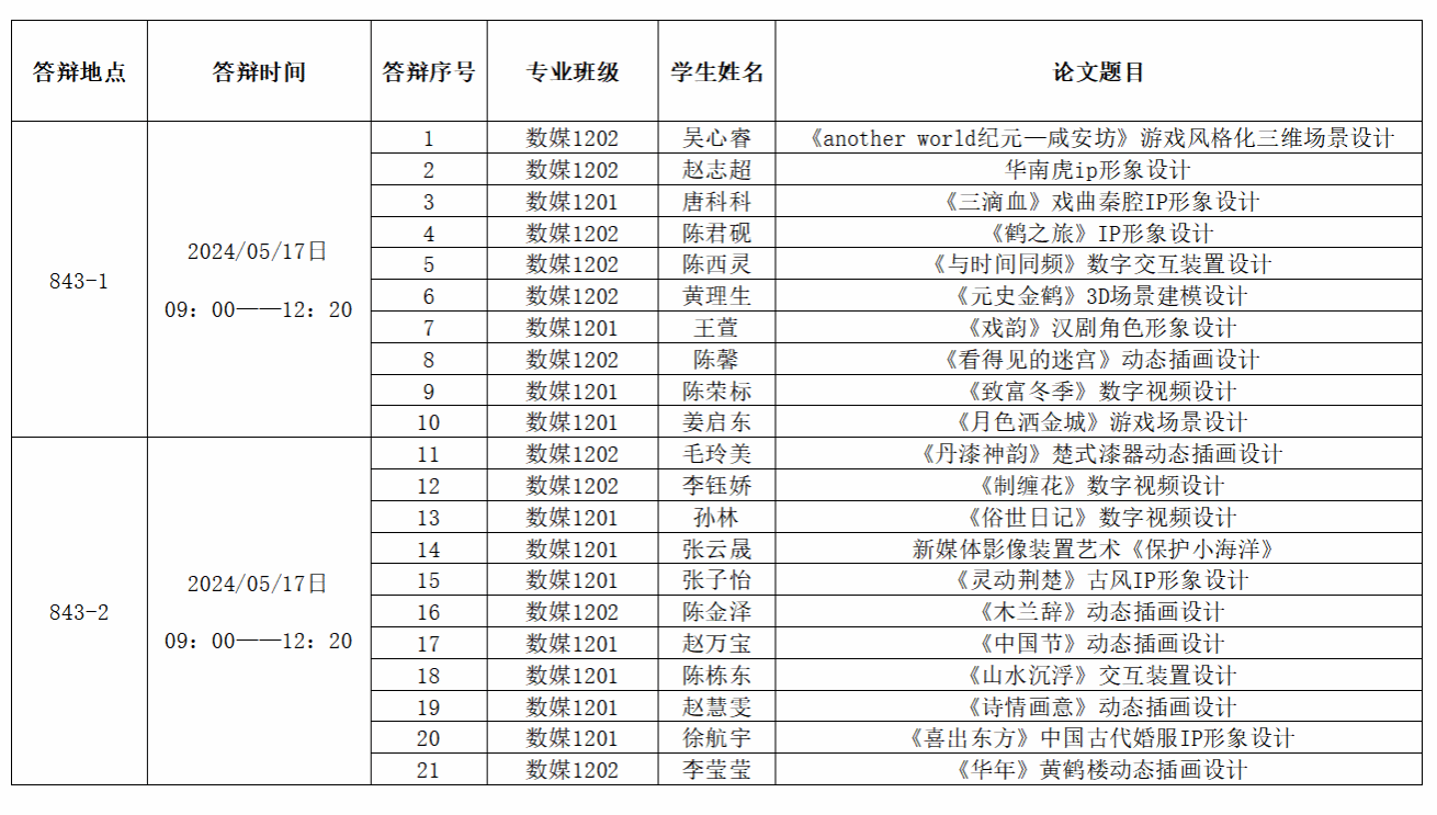 经2024届毕业设计(论文)质量检查综合评定,在数字媒体艺术专业本次毕业论文答辩中,部分同学的毕业设计(论文)一辩未能达到答辩通过标准,需进行二次答辩。根据艺术设计与传媒学院关于2024届毕业设计(论文)答辩的工作安排,现将2024届本科毕业设计(论文)二次答辩相关事宜通知如下,请各位同学予以关注并按照要求做好准备。