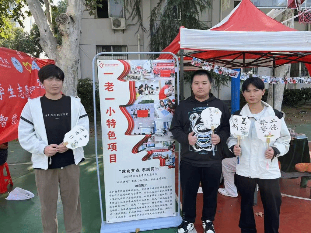 11月5日,桃园食堂门口人声鼎沸,正值学校社团人文艺术节开展之际,艺术设计与传媒学院青年志愿者协会组织开展2025湖北省青年志愿服务“社区计划”竞赛(专项赛)推广服务。活动以“一老一小”特色项目为核心,用笔墨绘扇的互动形式,让志愿精神在笔尖流转、在校园传递。