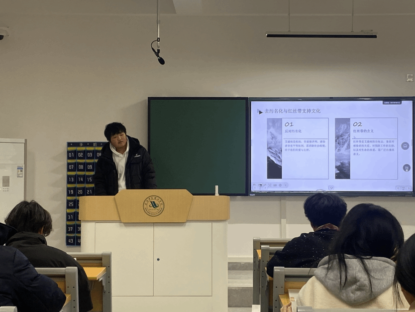 12月4日,我院数字媒体艺术1252班在教学楼隆重举行“青年知艾滋防艾滋”主题健康教育活动。本次活动由艺术设计与传媒学院团支书联合策划组织,面向全校青年学生开展系统性、科学化、互动式的艾滋病防治宣传教育,旨在构建“知艾、防艾、不惧艾、关爱艾”的校园健康文化。