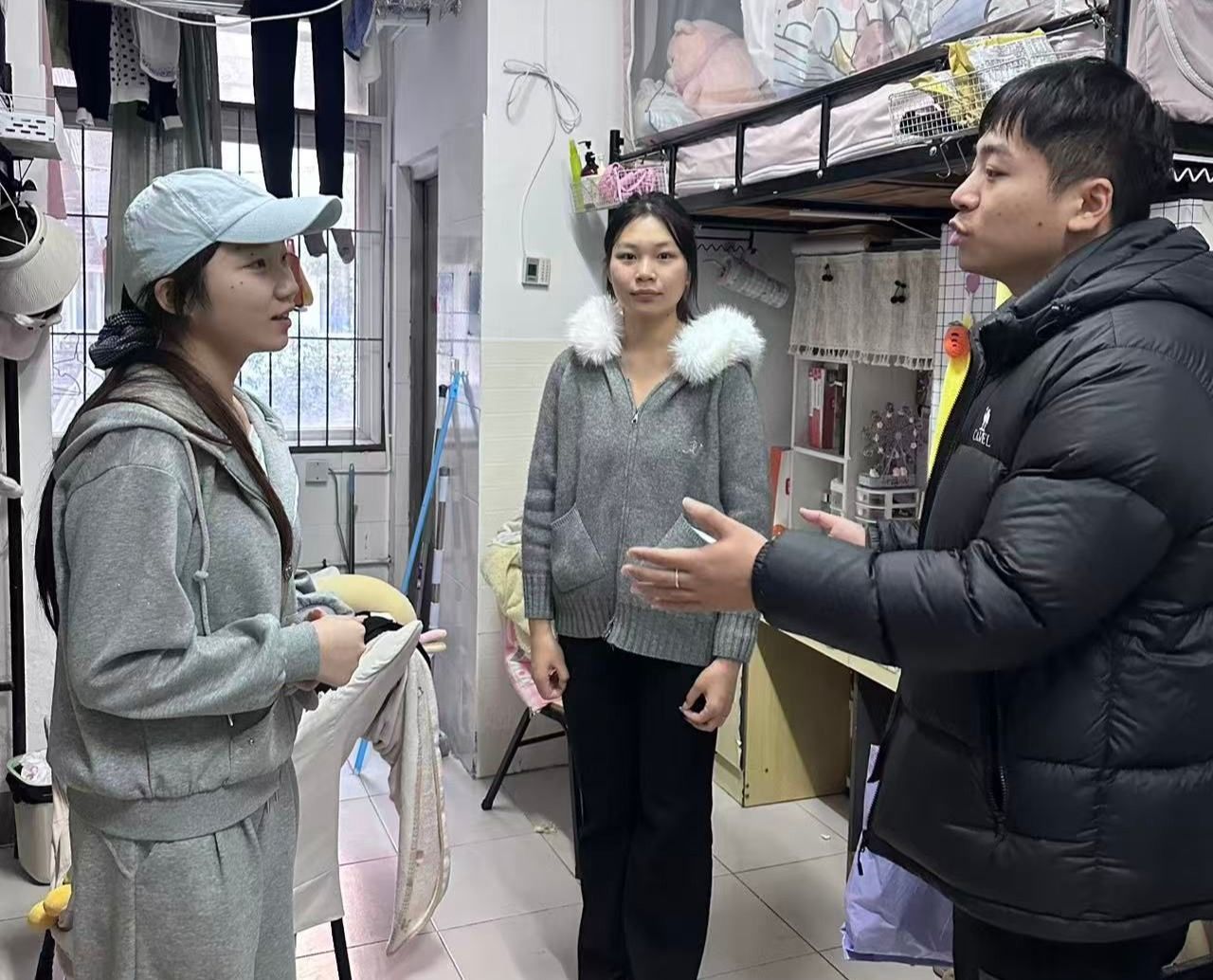 在专项排查过程中,辅导员们深入各学生宿舍,逐一开展细致检查。他们重点查看了宿舍门窗是否关严锁牢,确保所有门窗在学生离校后处于安全关闭状态,防止因门窗未关而引发的安全问题。同时,检查水电总闸是否彻底关闭,避免因水电未关而造成不必要的资源浪费和安全隐患。此外,辅导员们还关注宿舍内物品的归置情况,提醒同学们将贵重物品妥善保管或带回家中,避免遗失或损坏。在检查过程中,辅导员们结合寒假学生离校的相关要求,再次向同学们强调了离校前的注意事项,包括全面落实断水断电工作、妥善保管个人财物、注重离校途中的交通安全以及到家后及时向辅导员报备等内容。