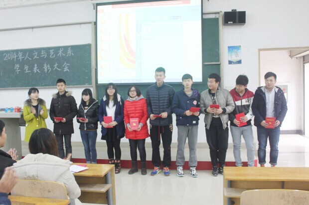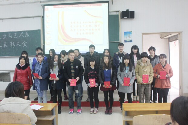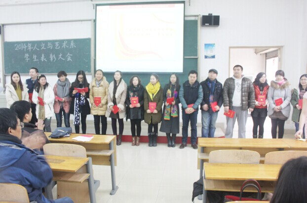1月13日中午12时30分,人文与艺术系在2-101举行了2014年人文与艺术系学生表彰大会。系领导、教师代表、学生代表参与了此次会议。系团总支书记刘浩波主持了本次大会,