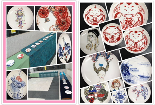 12月21日,在综合楼一楼大厅举行了《陶瓷艺术设计》创新实验项目—“瓷盘绘画”课程学生作品展,展览为期一周。由人文与艺术系陶艺制作实训室王琳老师带领艺术设计1121班学生精心制作,作品为釉下彩绘装饰,这些彩绘作品从釉下彩釉料的发色和瓷泥的烧制上都比以前有了很大的进步,消除了以往瓷泥烧制不白、釉料发色不均、变色等偶然性情况。