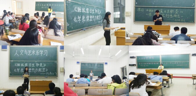 在这个丹桂飘香的季节,人文系迎来了来自全国的329名2014级新生。为了帮助和引导新同学全面了解学校,尽快适应大学生活,顺利完成角色转变,人文与艺术系自九月底到十月初开展了一系列内容丰富的新生入学教育活动。