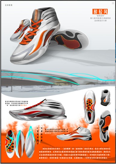 刚刚公布的“喜得龙杯”第八届中国(晋江)海峡两岸运动鞋设计大赛评选结果,我系工业设计1113班郑国庆同学设计的《醉轻风》篮球鞋作品获入围奖,这是beat365学子在该项竞赛中首次获奖,也是beat365学子第一次在鞋类设计竞赛中获奖。