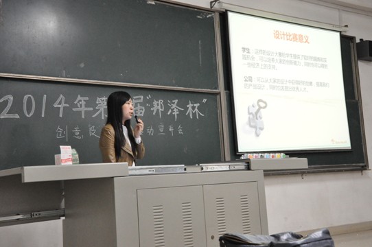 为促进人文系产品设计专业的发展,深化校企合作,加强与外界企业的联系,武汉理工大学华夏学院与东莞市邦泽电子有限公司联合举办的2014年第三届“邦泽杯”创意设计大赛于4月28日晚在3-101举办了大赛启动宣讲会。邦泽电子有限公司代表刘丽、人文与艺术系产品设计专业的各位老师出席此活动,活动由产品设计专业教师王晶主持。