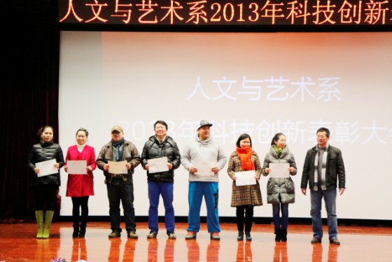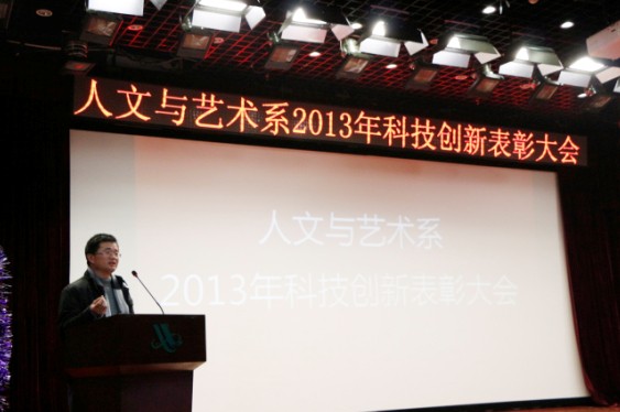 又是一年辞旧迎新,12月25晚,人文与艺术系师生齐聚学术报告厅,举办2013年大学生科技创新表彰大会。系主任尹章池教授,党总支书记李猜,系副主任李娇、余庆华以及教学办、学工办、各教研室的老师出席了此次大会,大会由系团总支书记刘浩波主持。