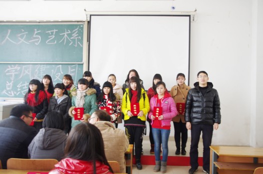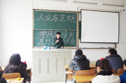 首先,刘静主任对前期人文与艺术系学风建设月活动做总结。刘主任从学生迟到现象、寝室学习氛围、宿舍安全隐患、考风考纪问题、学生干部管理能力及期末考试工作六个方面对学风建设月做了总结。刘主任说:“通过学风建设月的一系列工作,我系的各方面都有提高,今后仍要加强管理,将存在的问题逐一解决。”