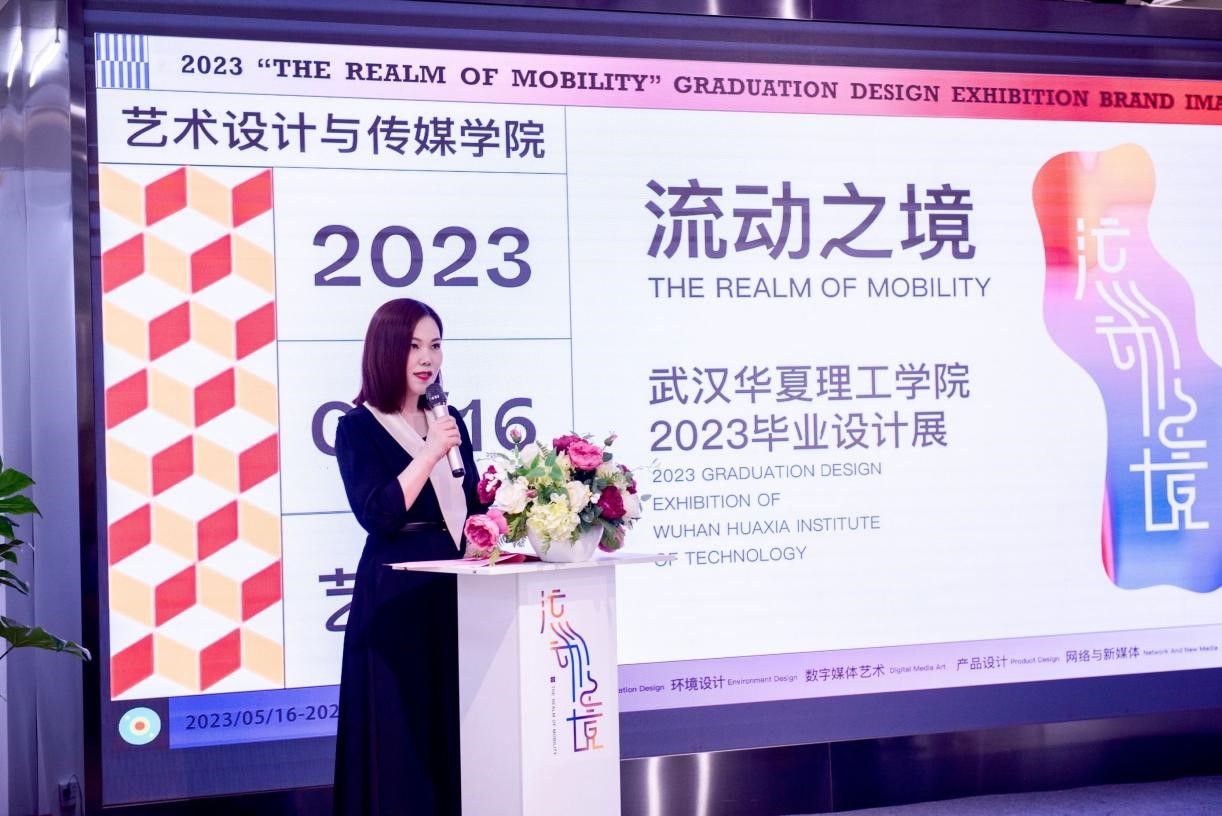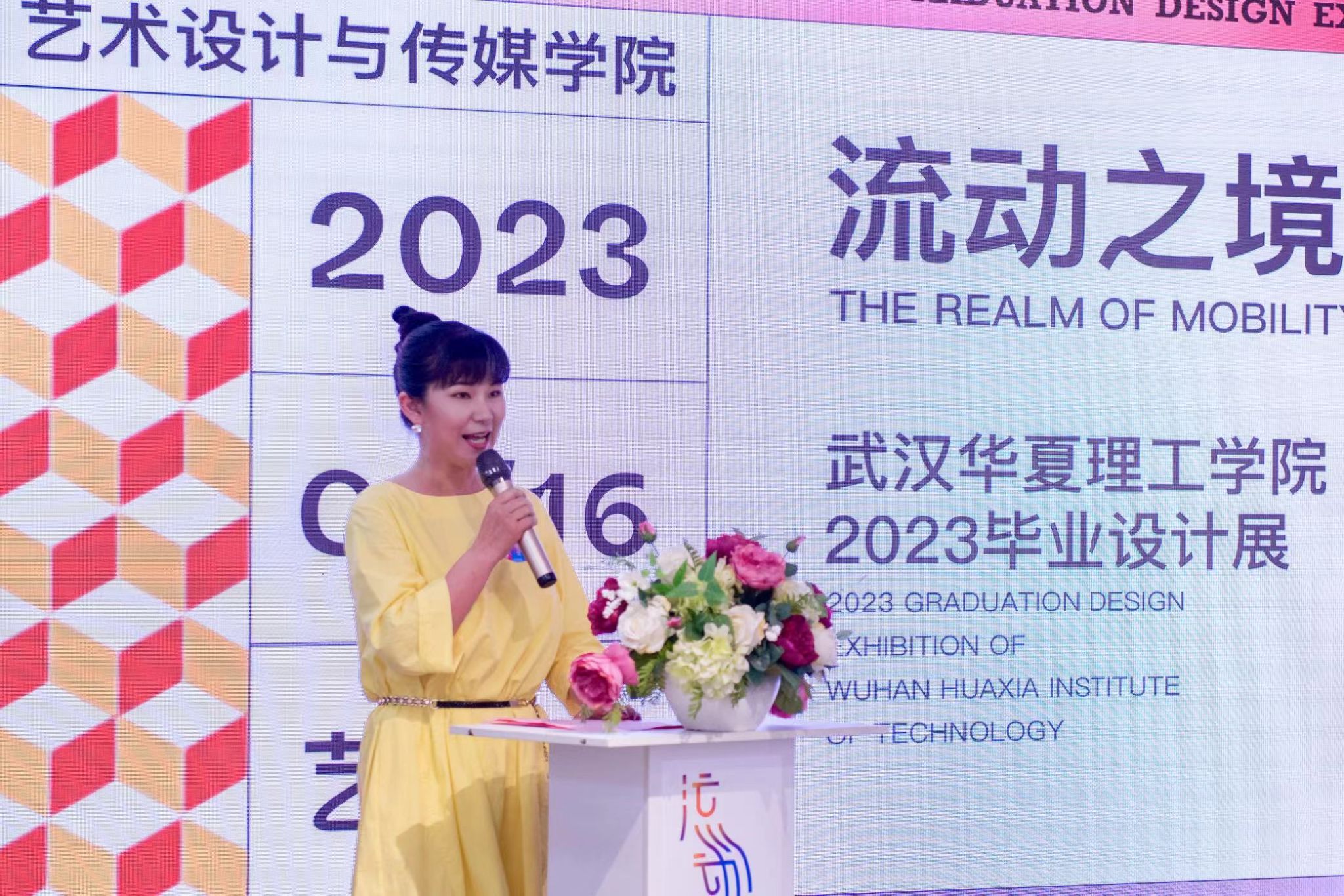 艺术设计与传媒学院院长李娇回顾了“青合力”毕业展 “东方、进步、新生、凝聚”的共同愿景,我们将青春力量赋予别具一格的艺术理解。让蕴藏博大精深的东方文化、象征永远前行的荆楚文化、凝结最热血的青春光芒,汇聚最优秀的设计力量,见可而进“最湖北”的设计作品。最后她寄语各位学子:“彼方尚有荣光在,心有所期,全力以赴,必有所成。”